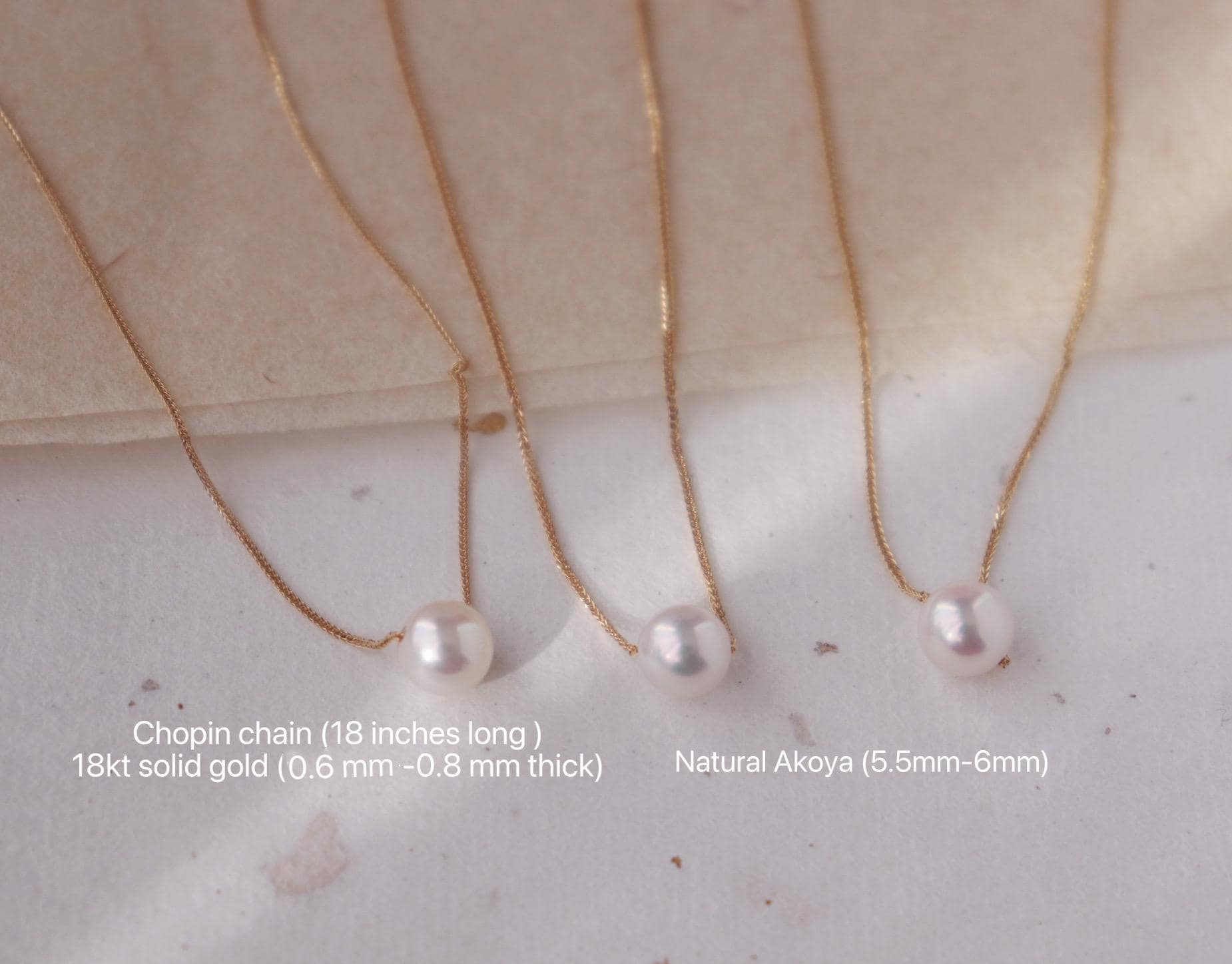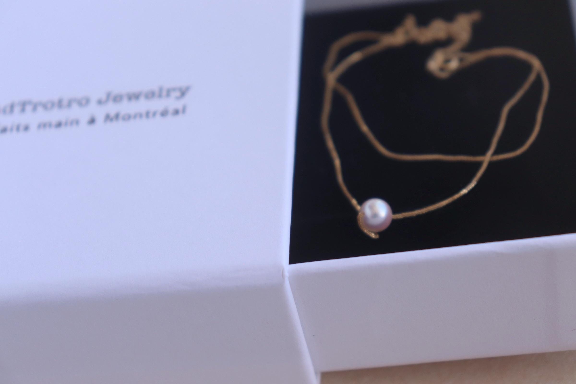 18kt solid gold chain + natural Akoya pearl.