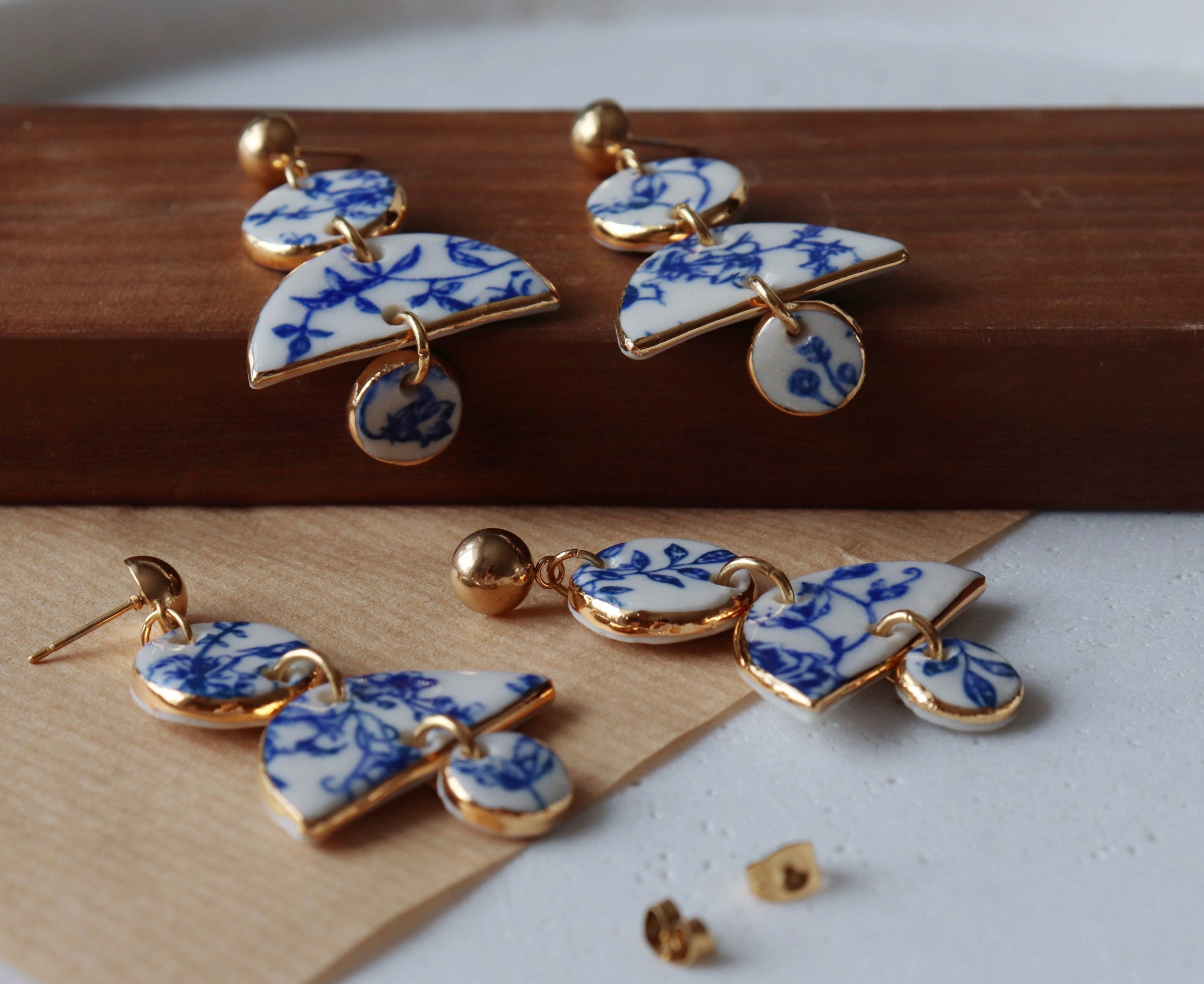 Please note the back of earring is not glazed or colored ( where they lay on the shelf)