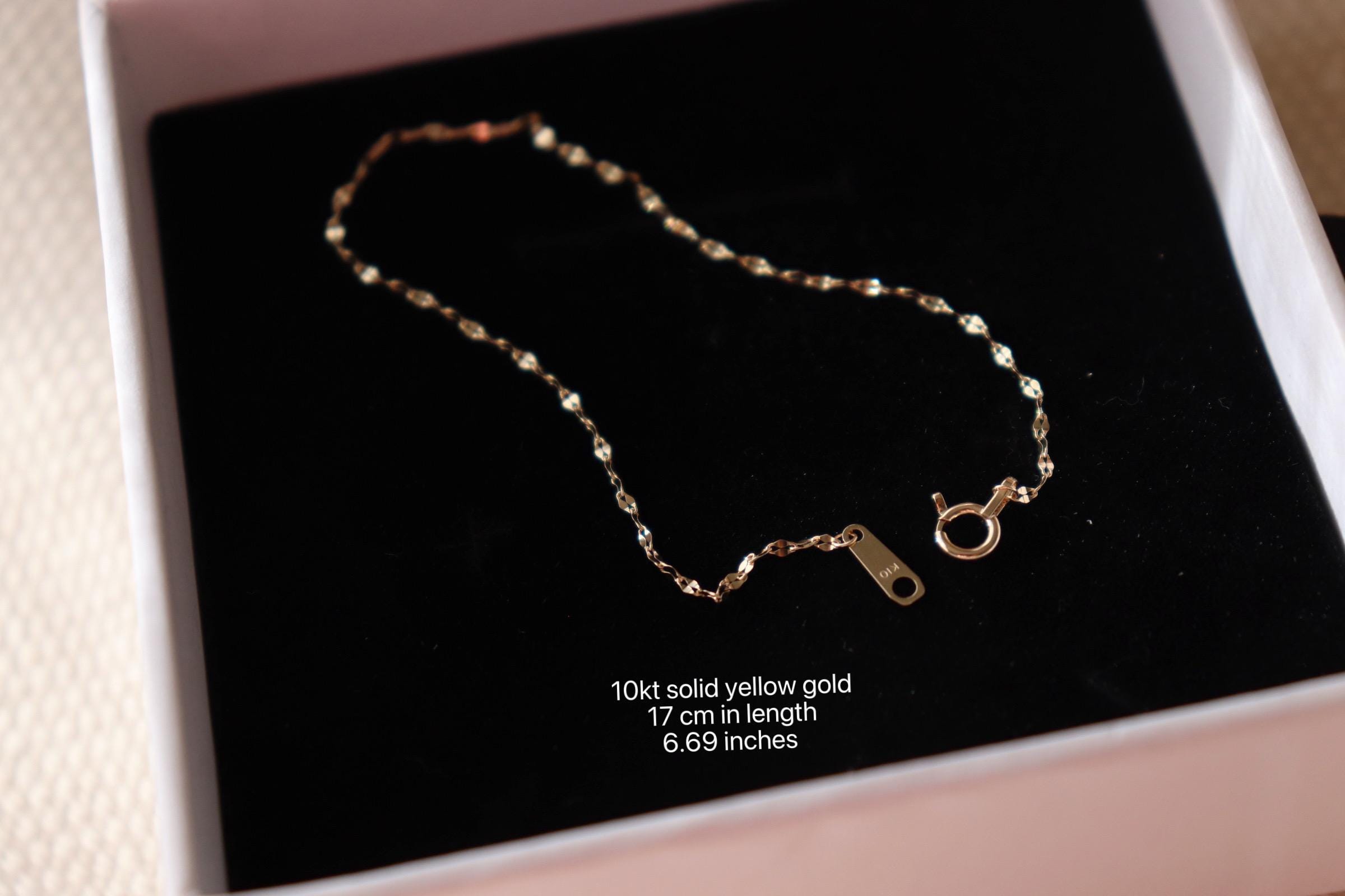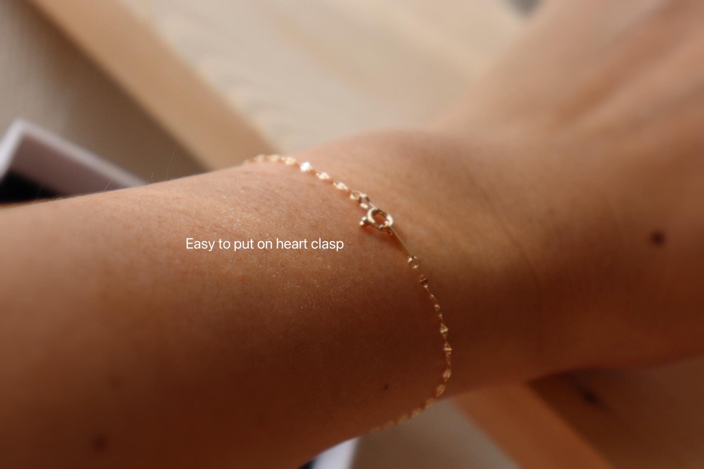 Chain is 6.69 inches long (17 cm in length) attached with easy to open heart-shaped clasp.