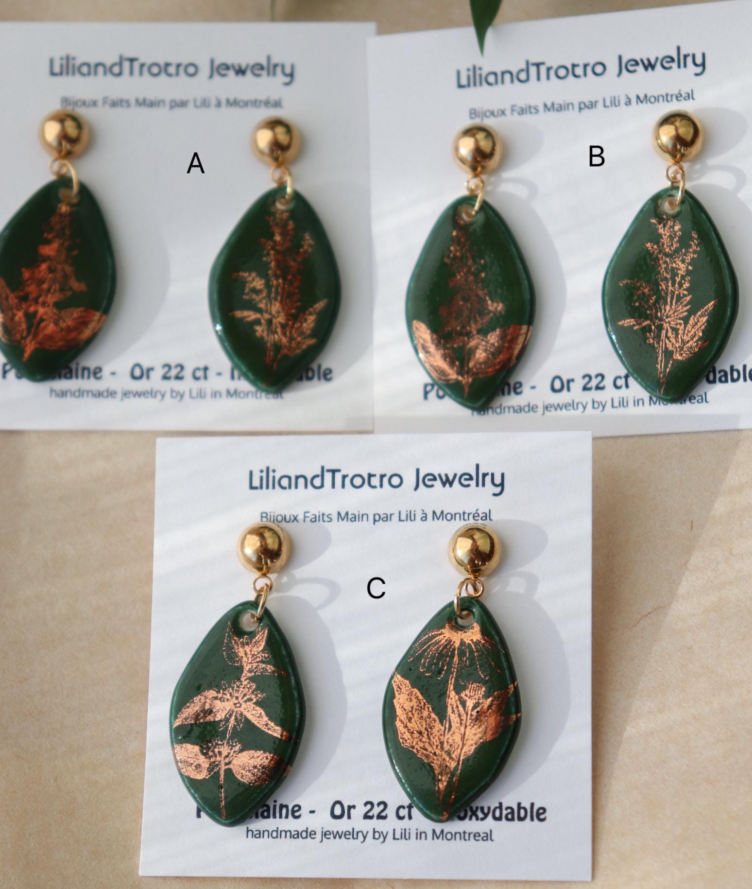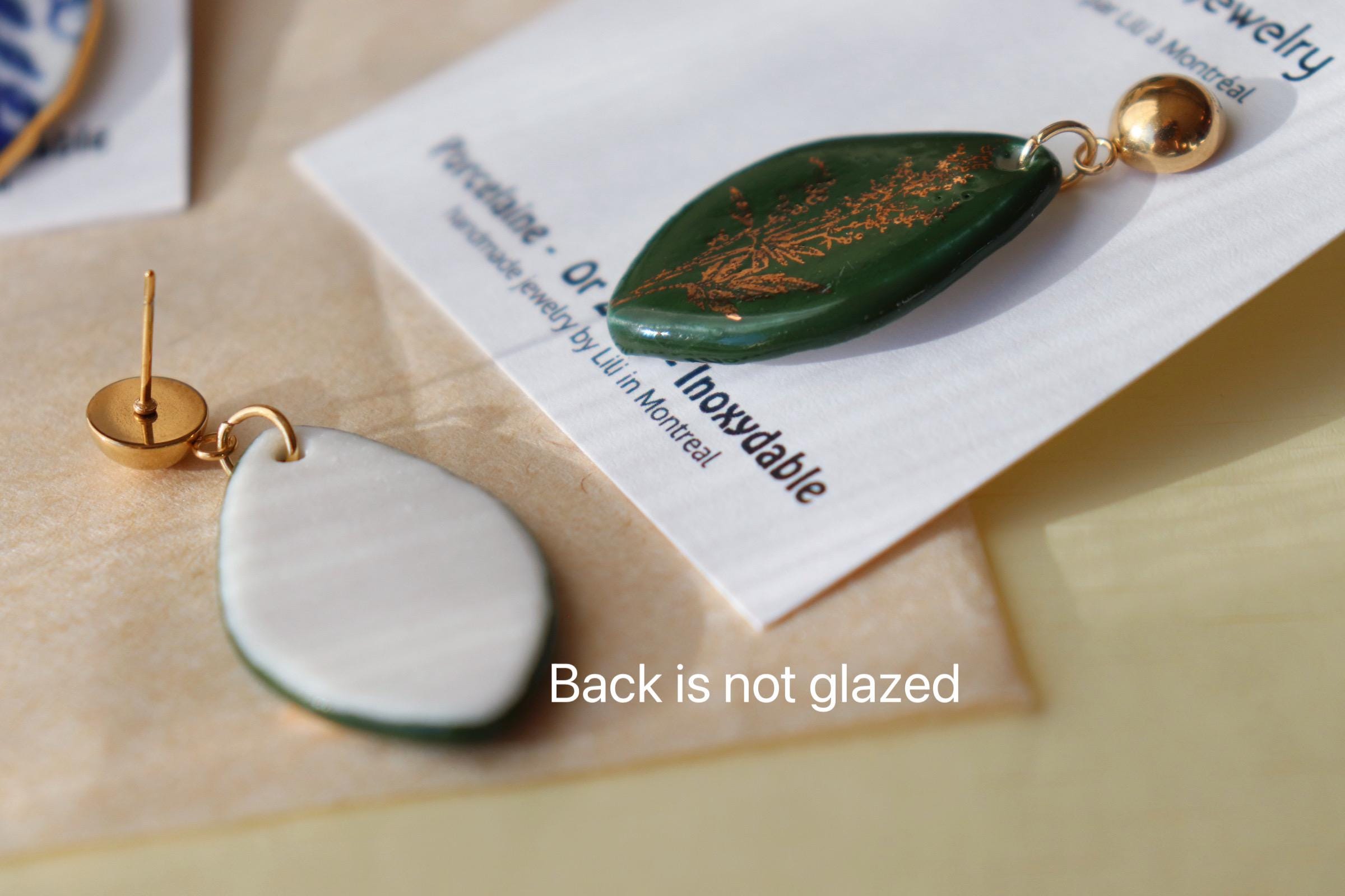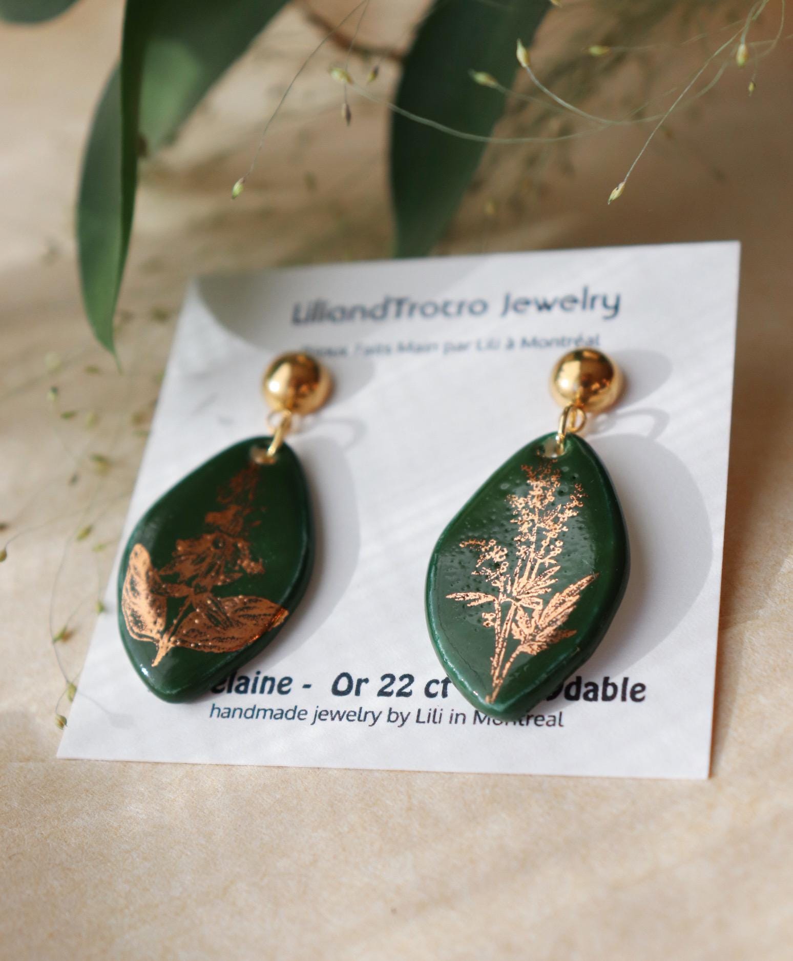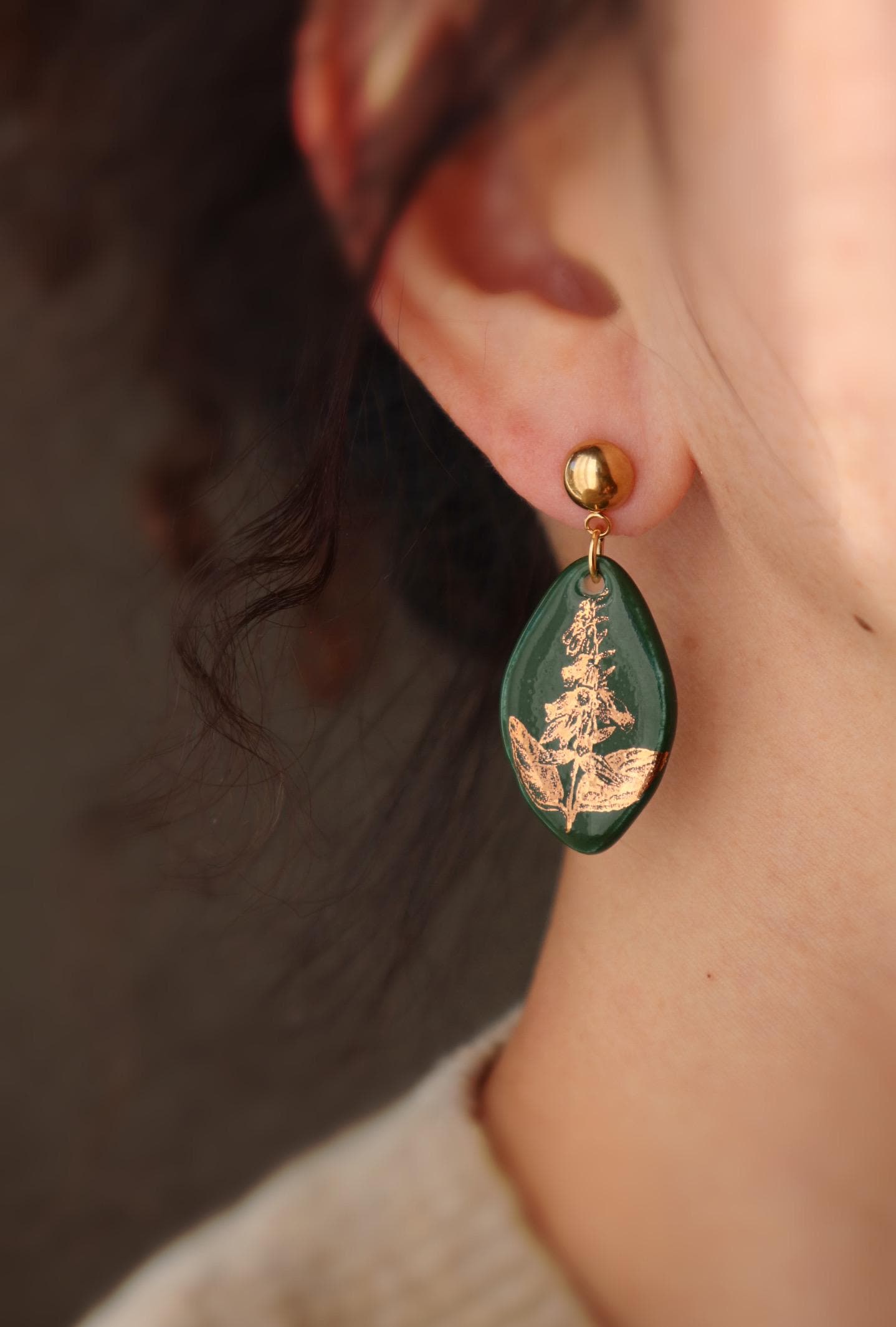 ☁️ These tree green golden plants porcelain earrings are totally holiday vibe.