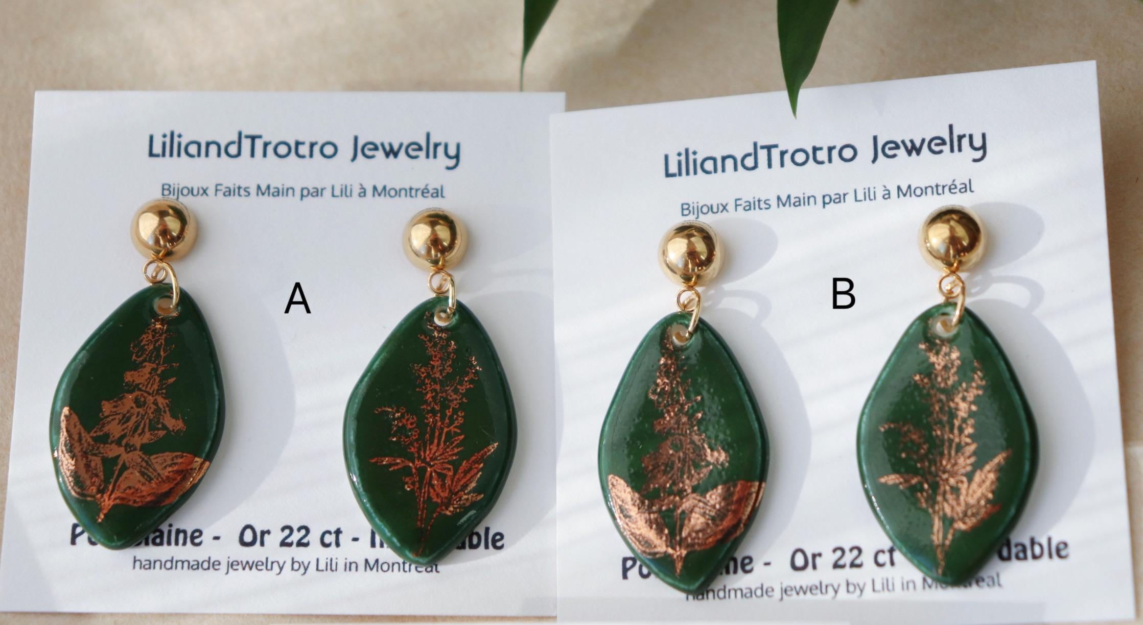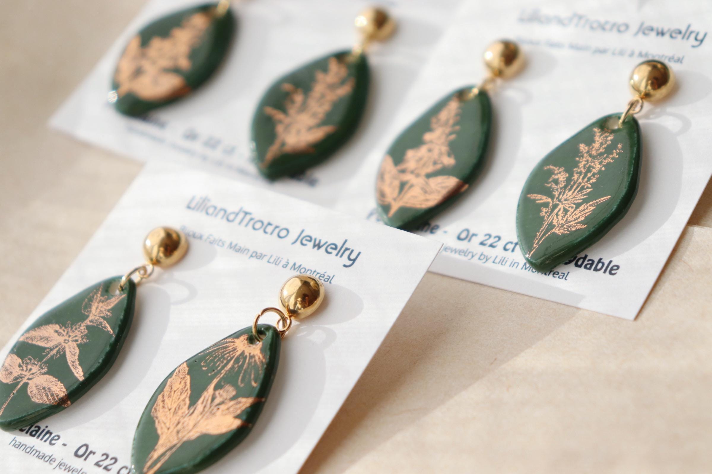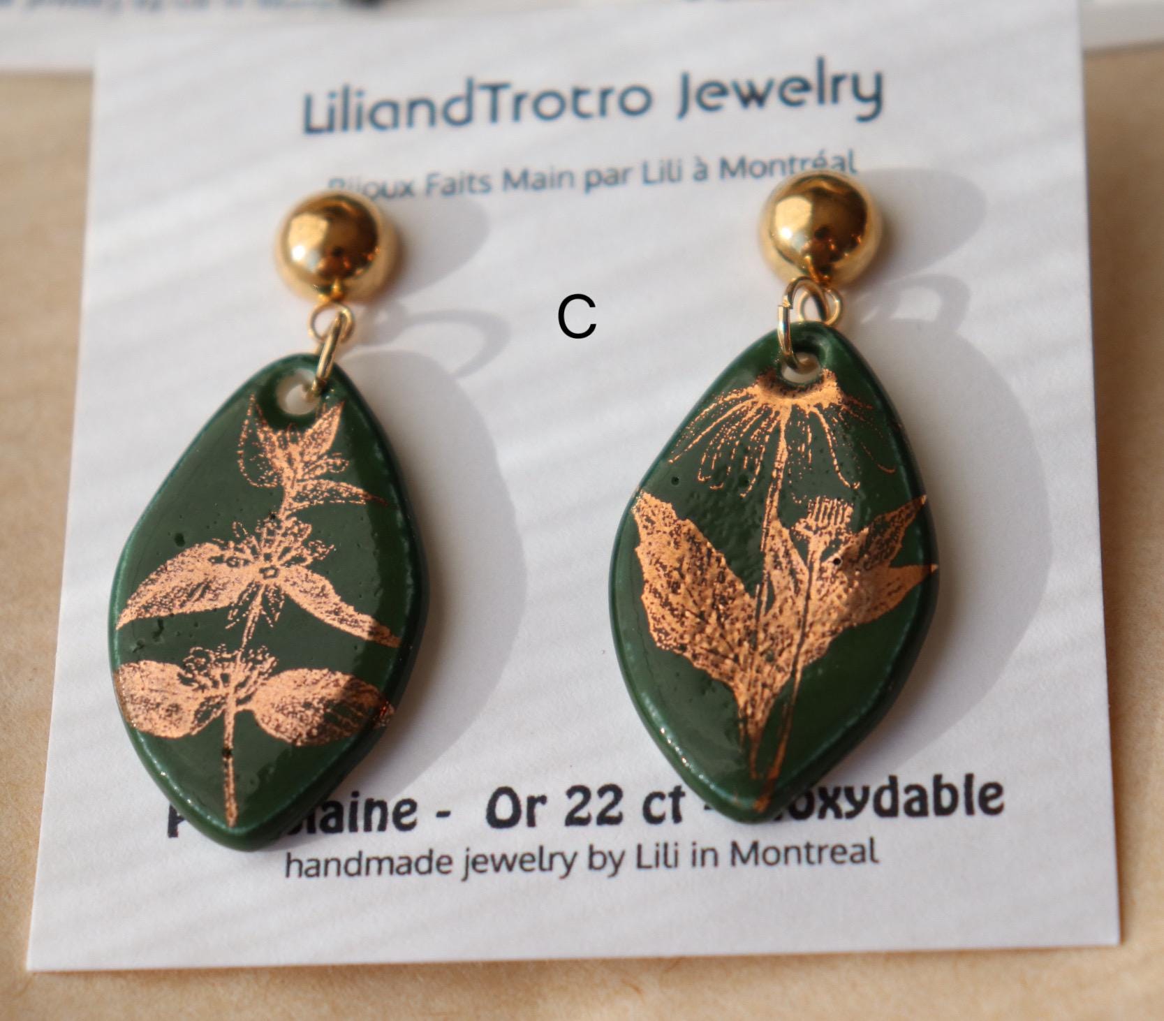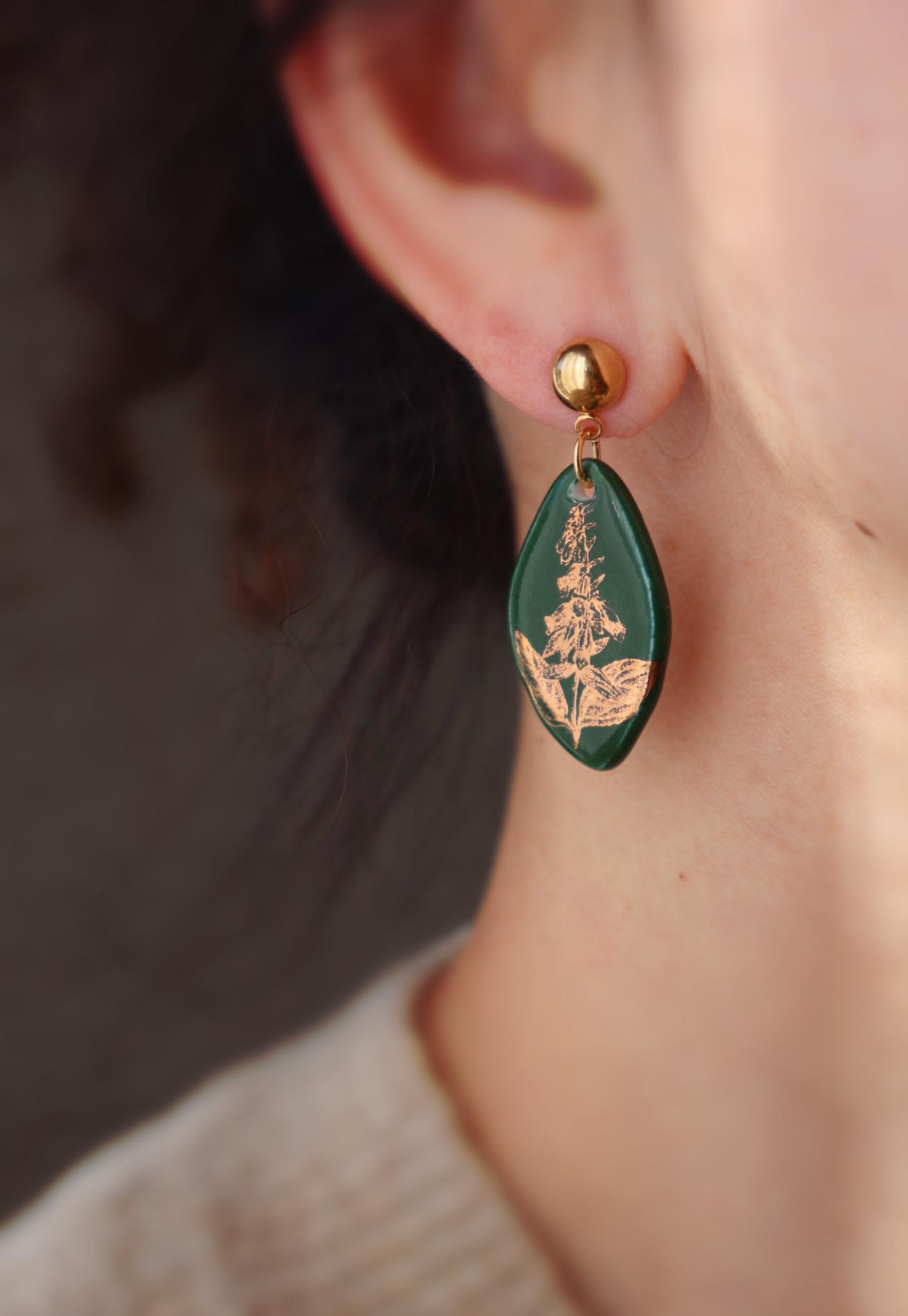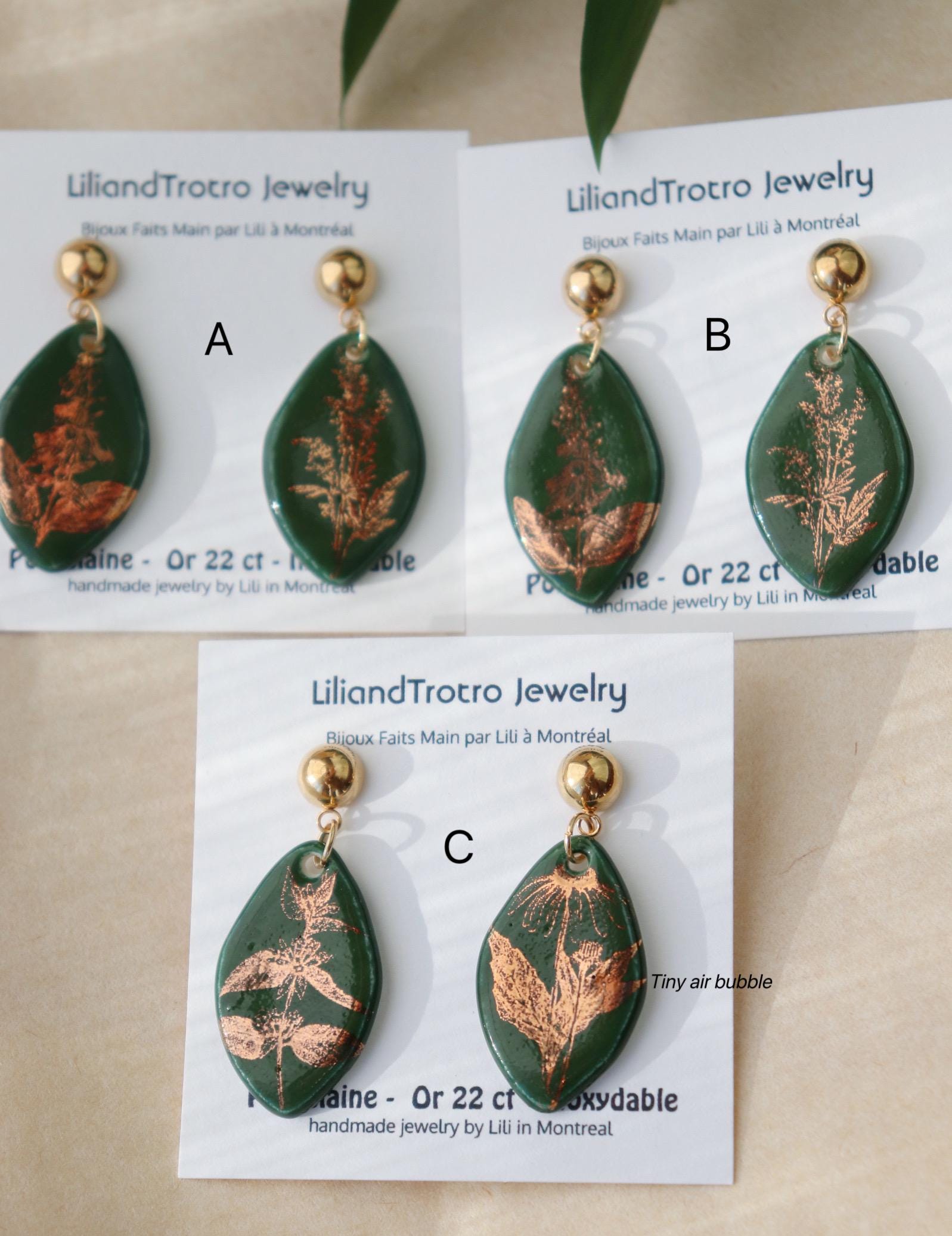 ☁️ These tree green golden plants porcelain earrings are totally holiday vibe.