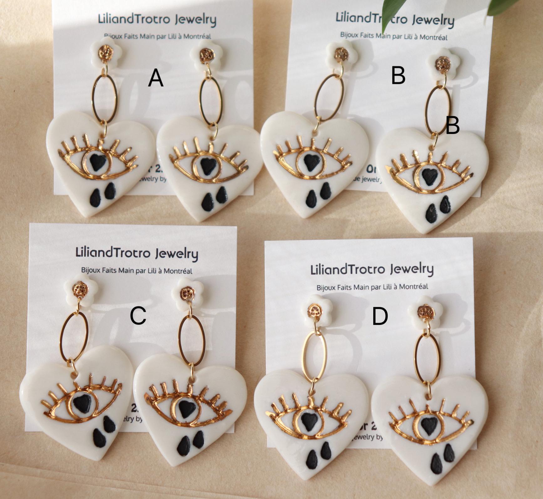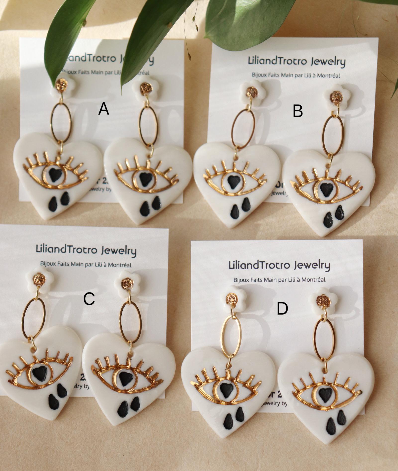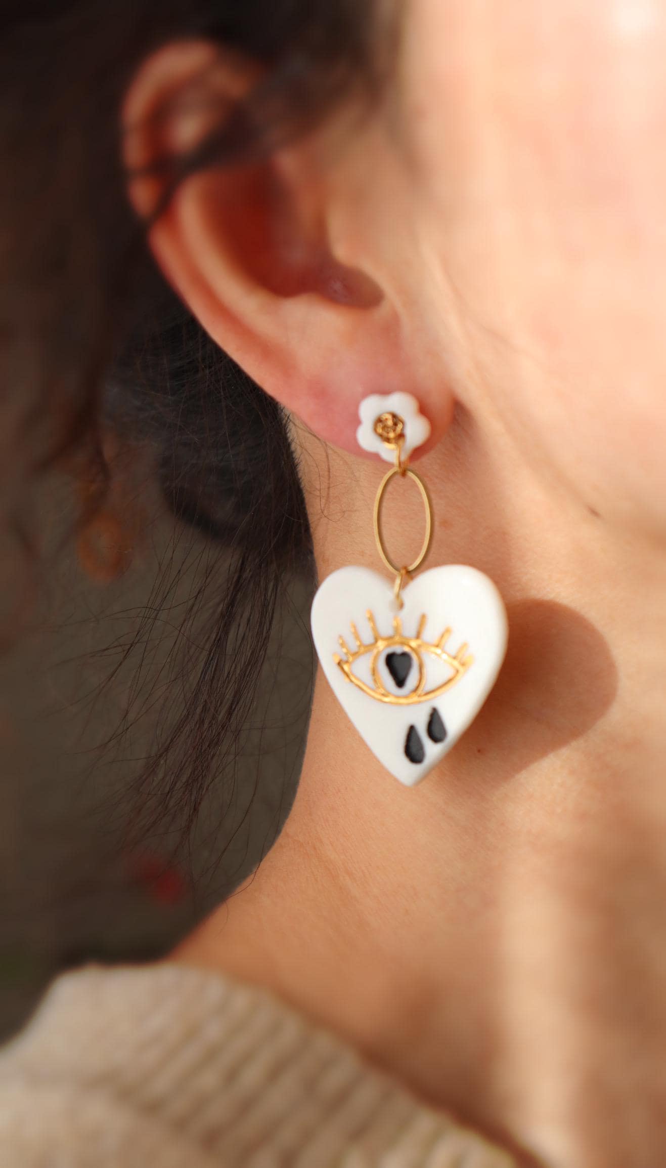 Handpainted heart shaped porcelain earrings are one of the kind and eye-catching.