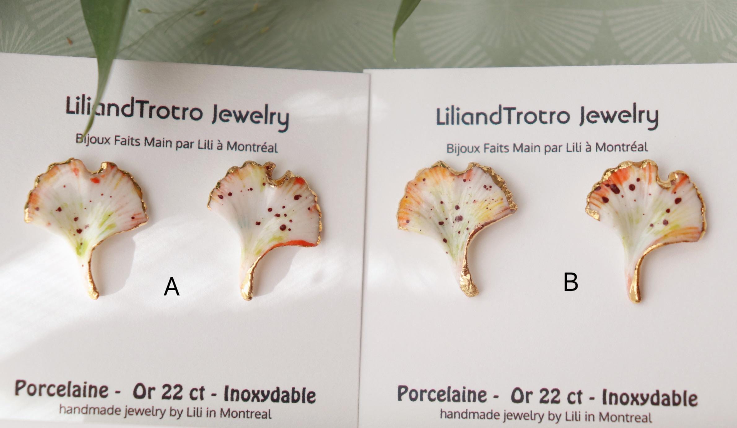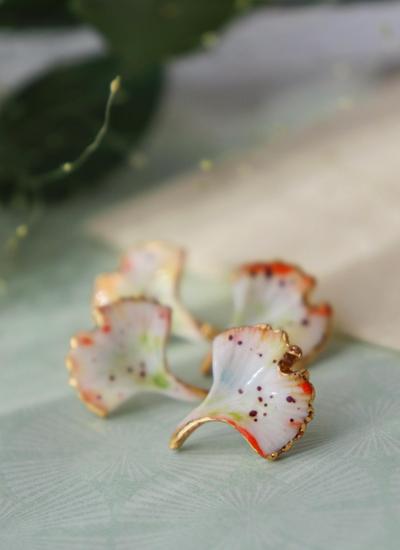 Hand build each ginkgo and Handpainted with watercolor ( They are quite hard and long to make, please handle them with care )