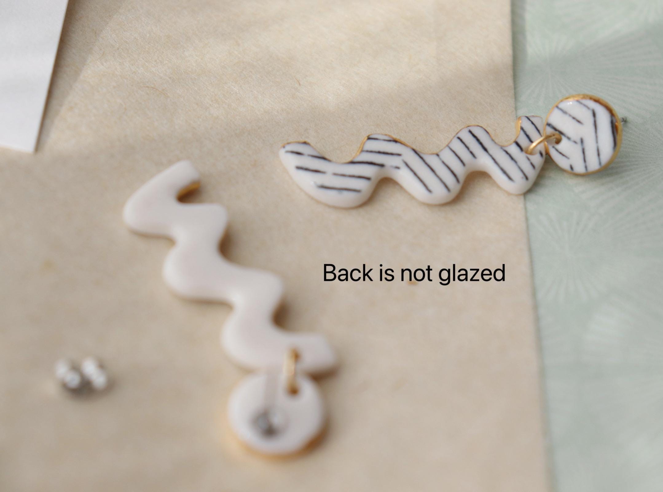 Please note the back of earring is not glazed or colored ( where they lay on the shelf)