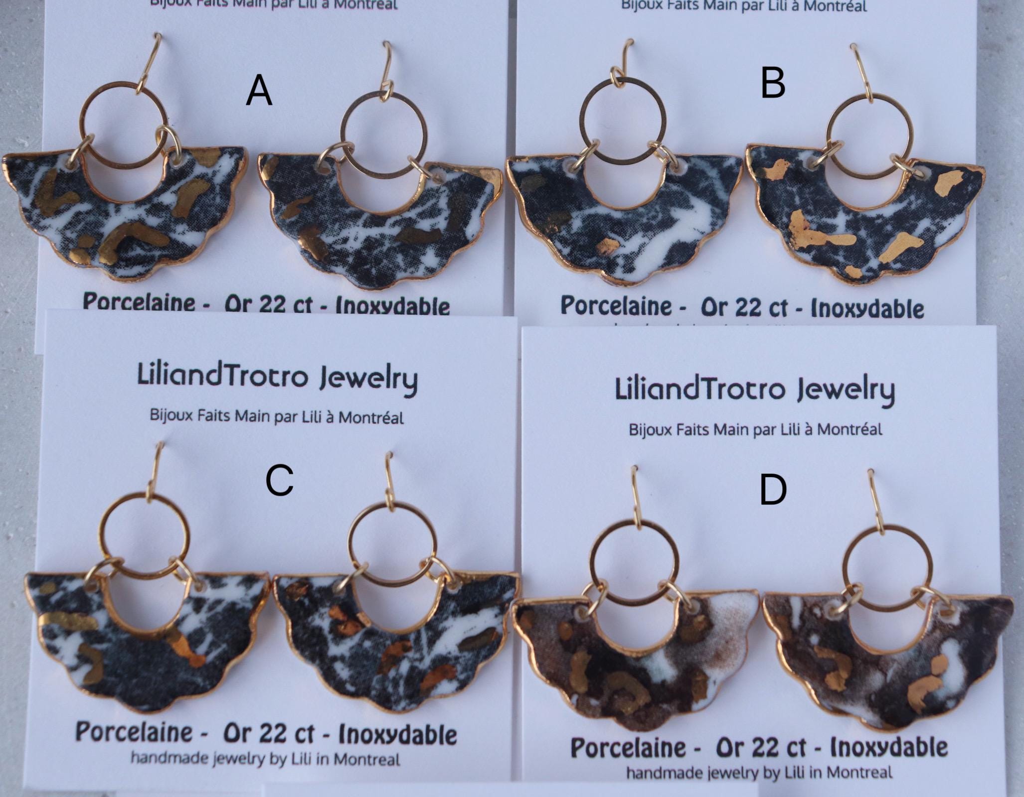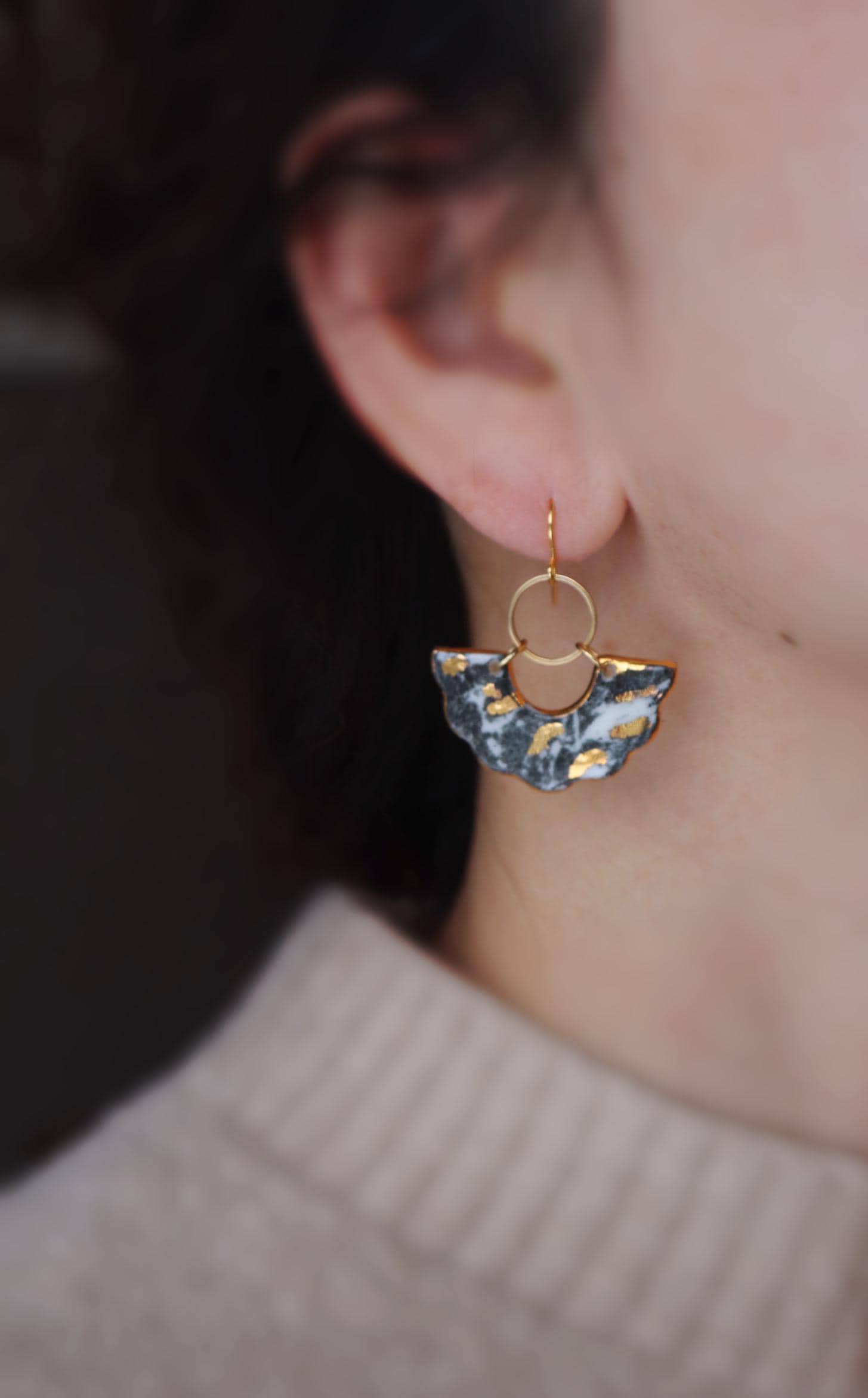 They are first 2026 January batch, these black marbles porcelain earrings are handmade by me in Montreal studio.