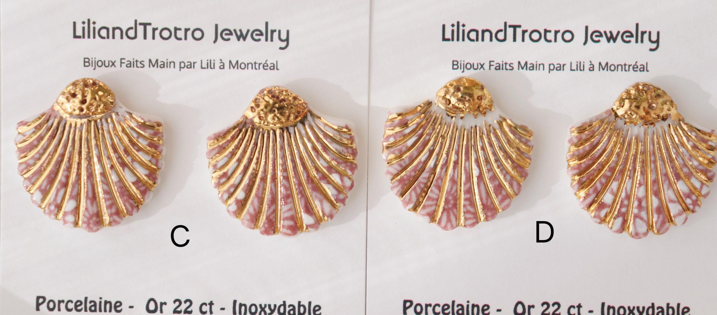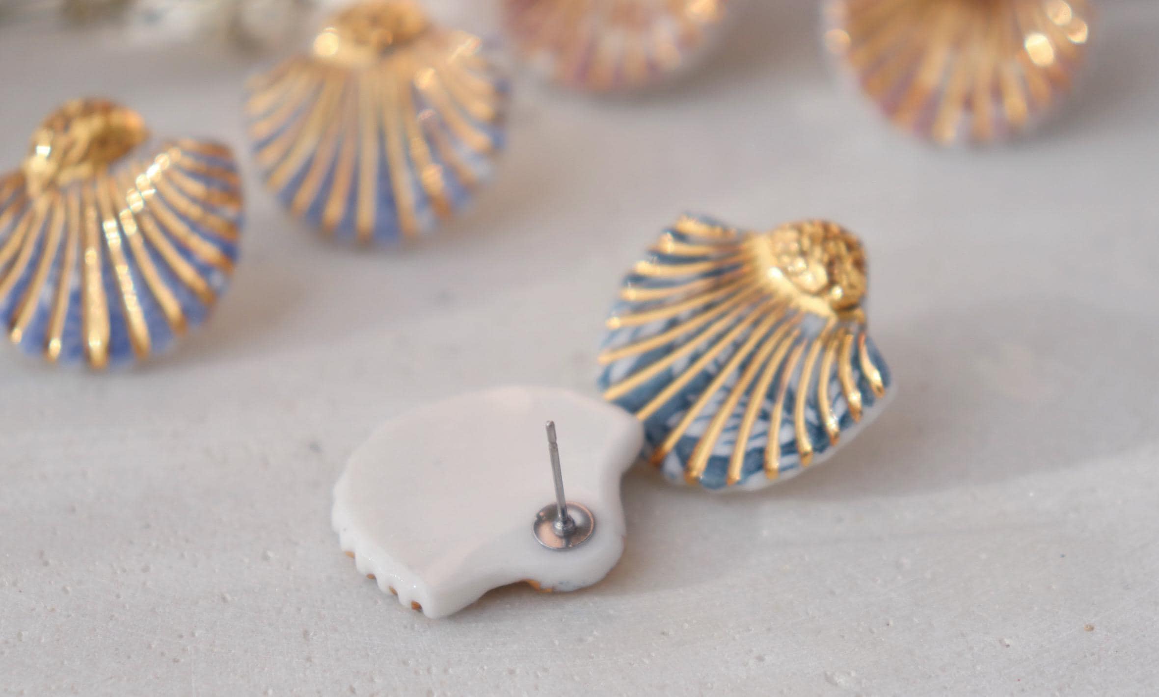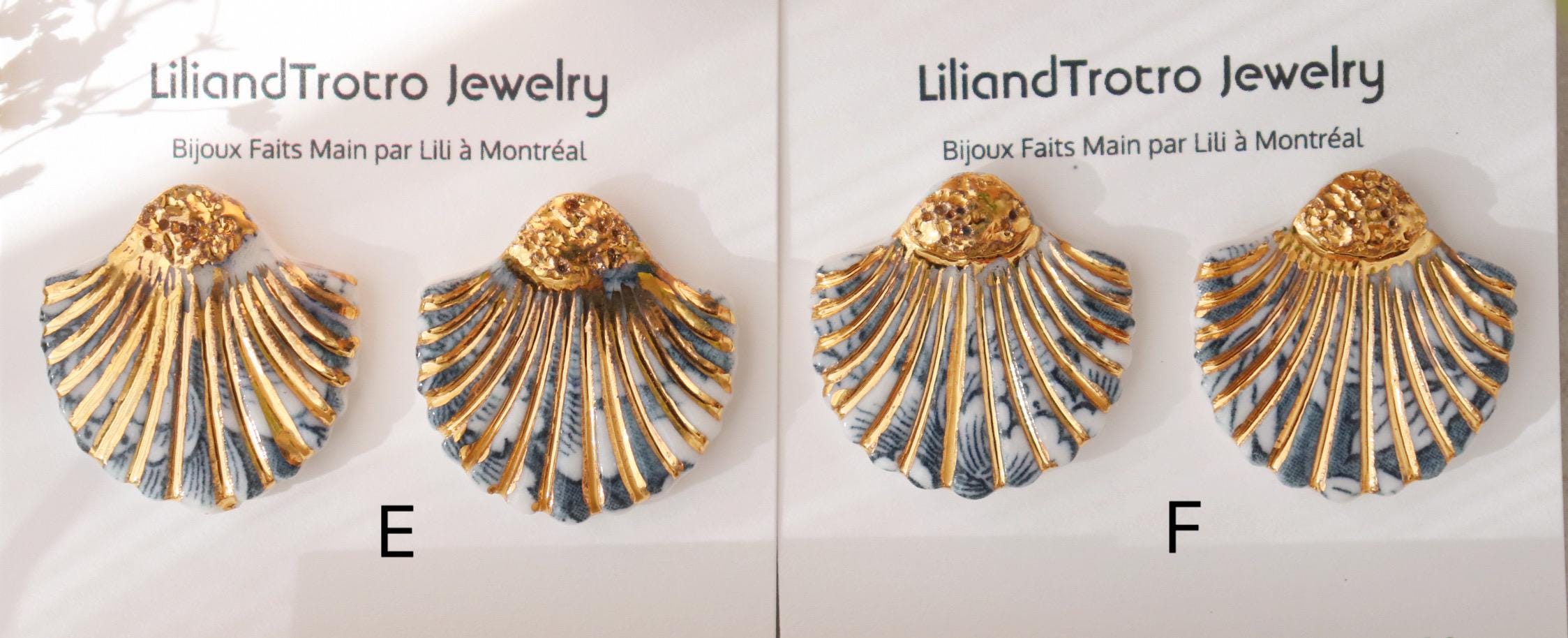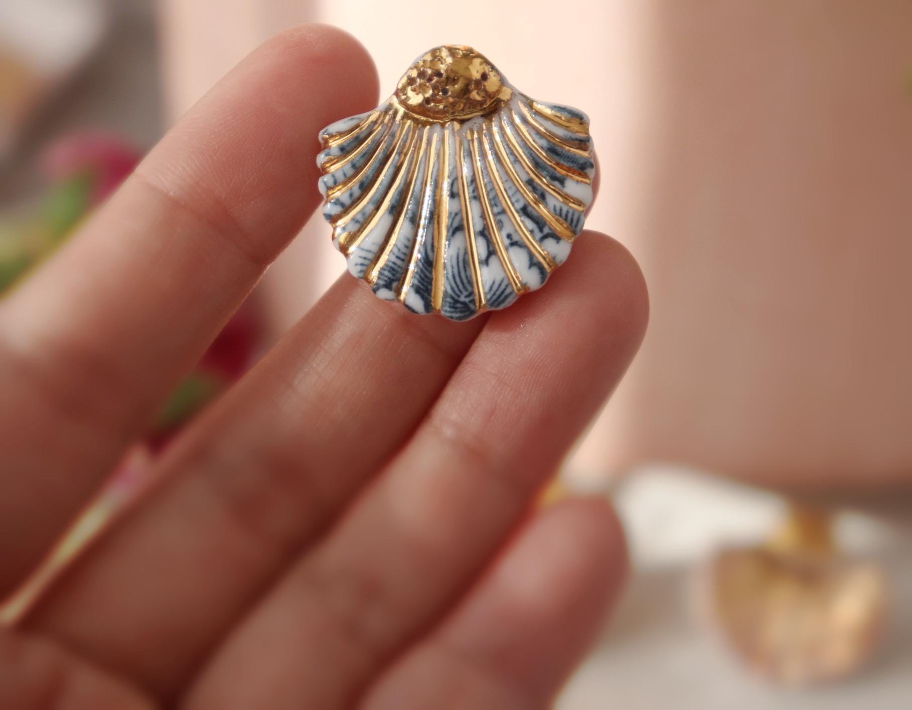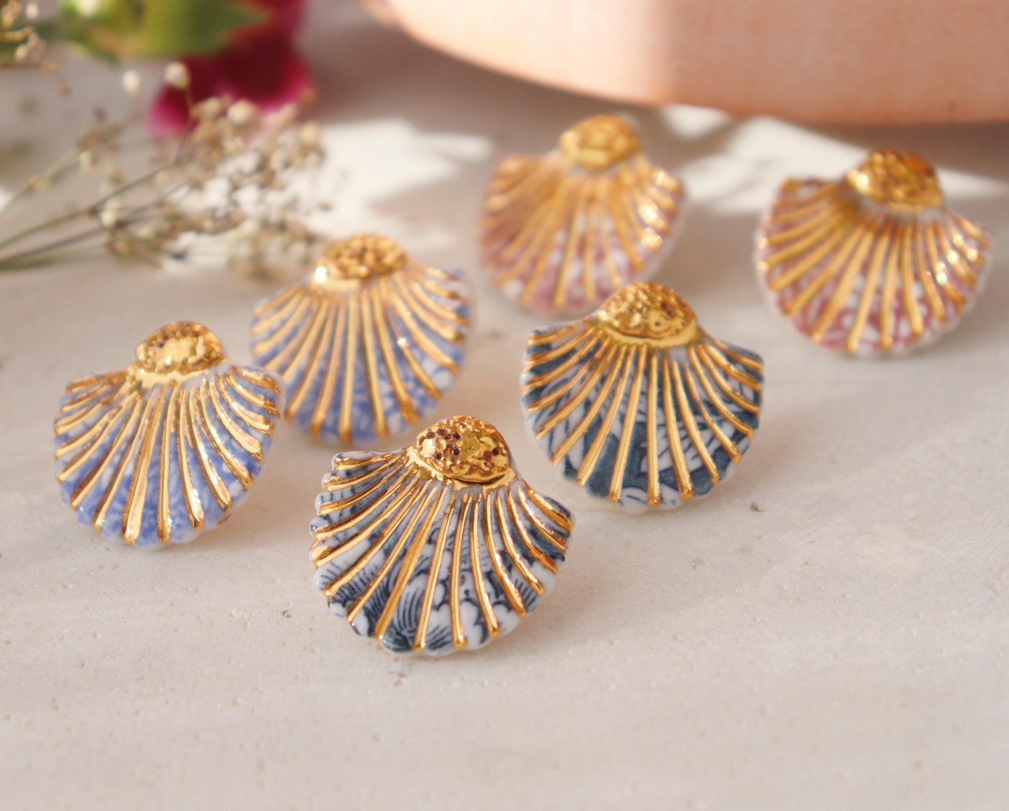 Glossy gold painted seashells are handmade by me in Montreal studio.
