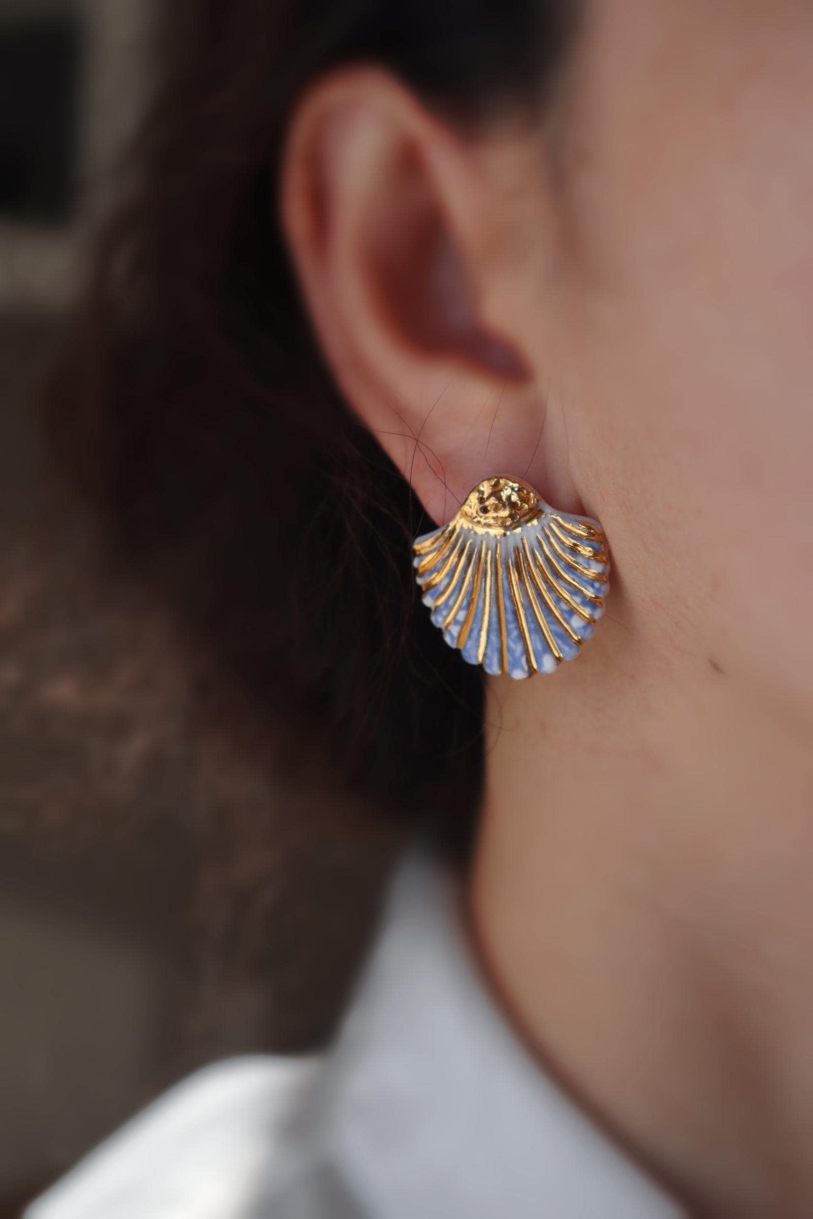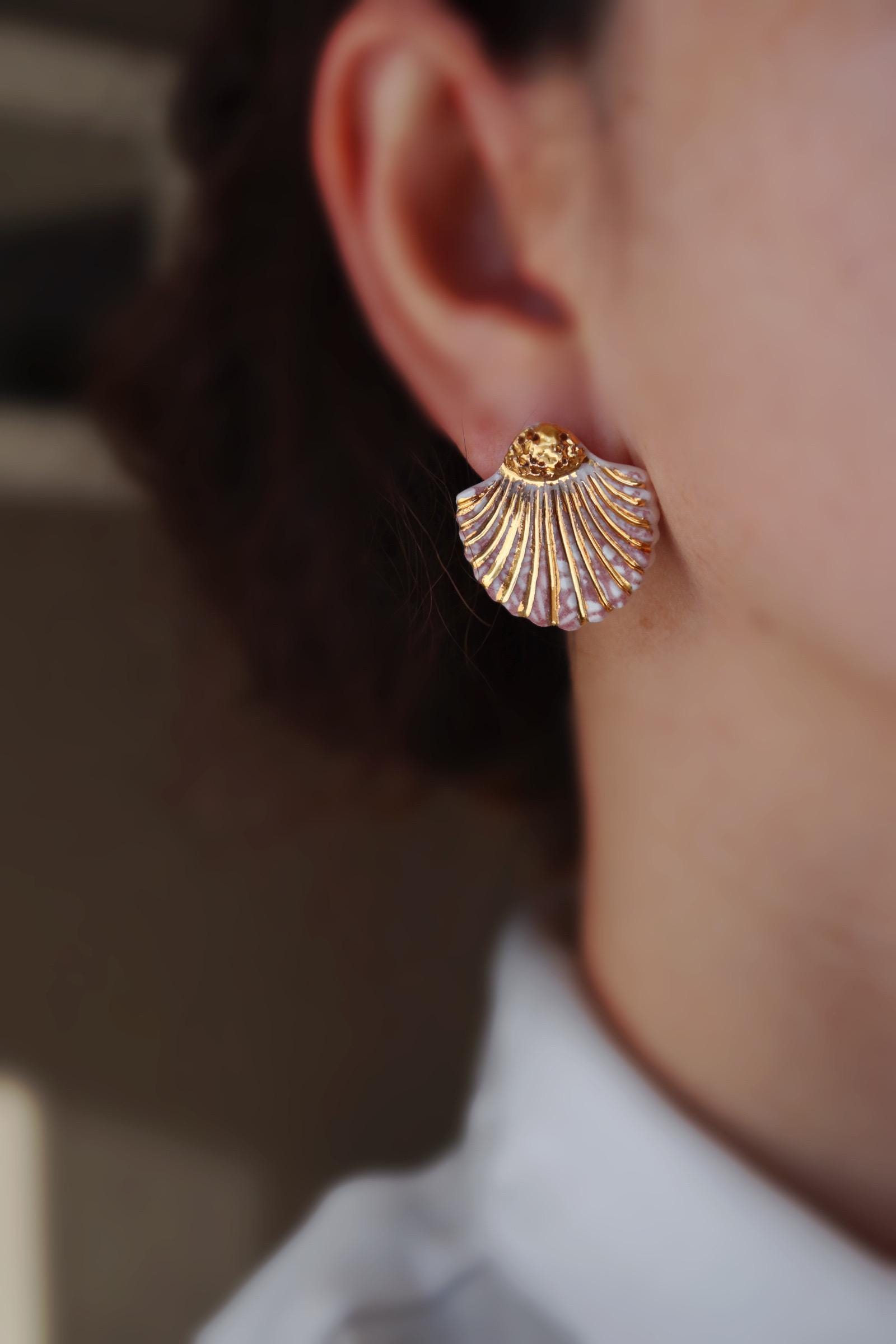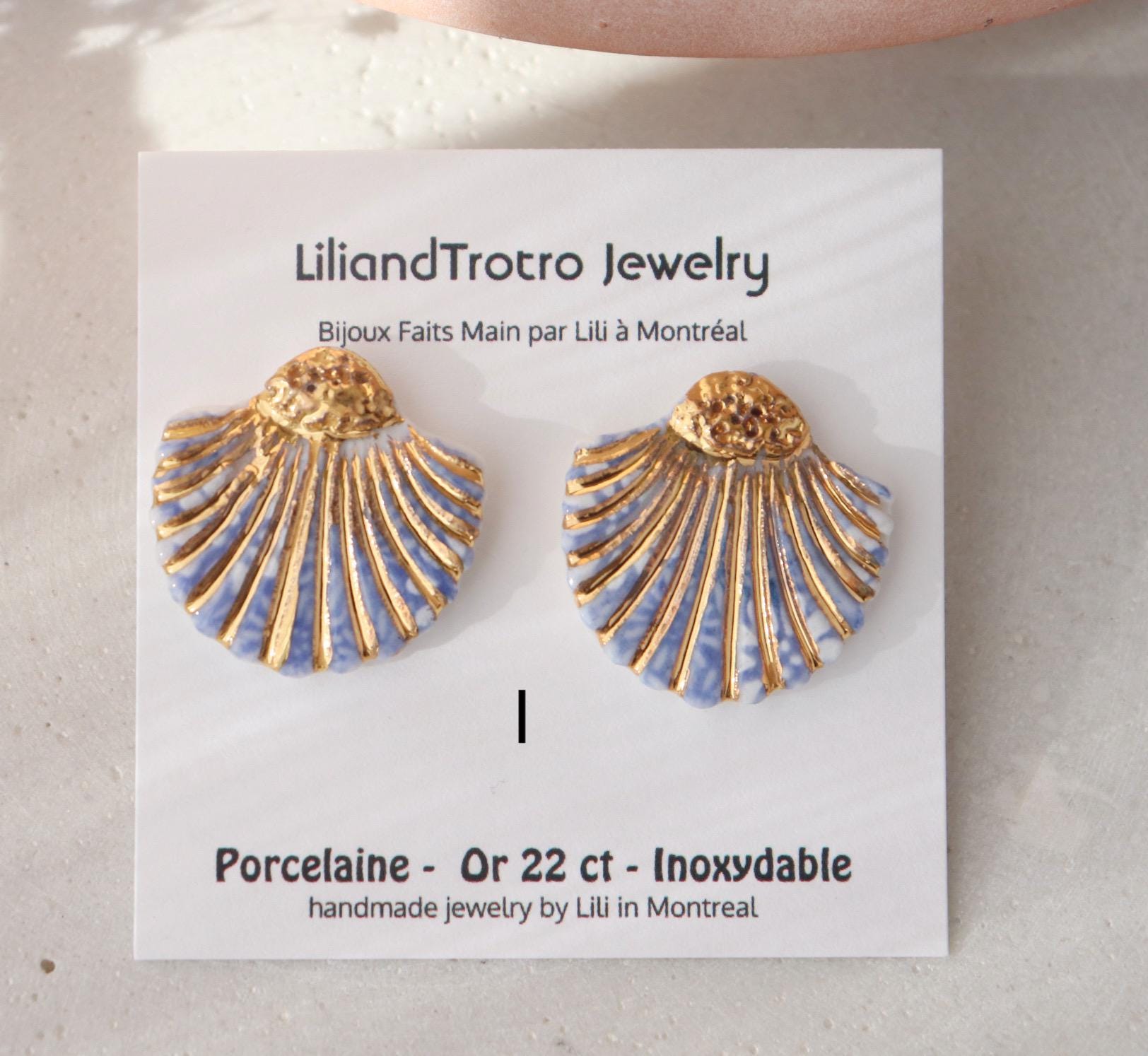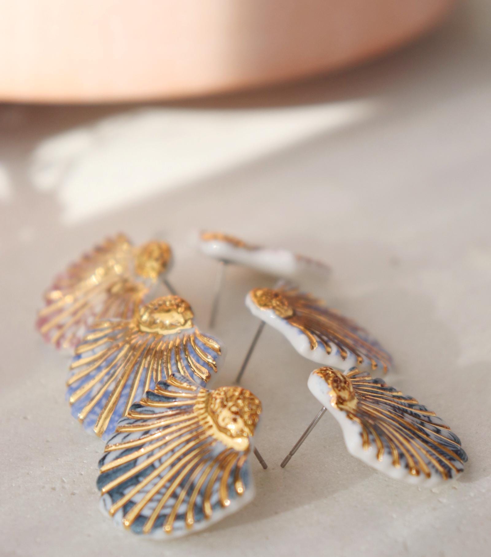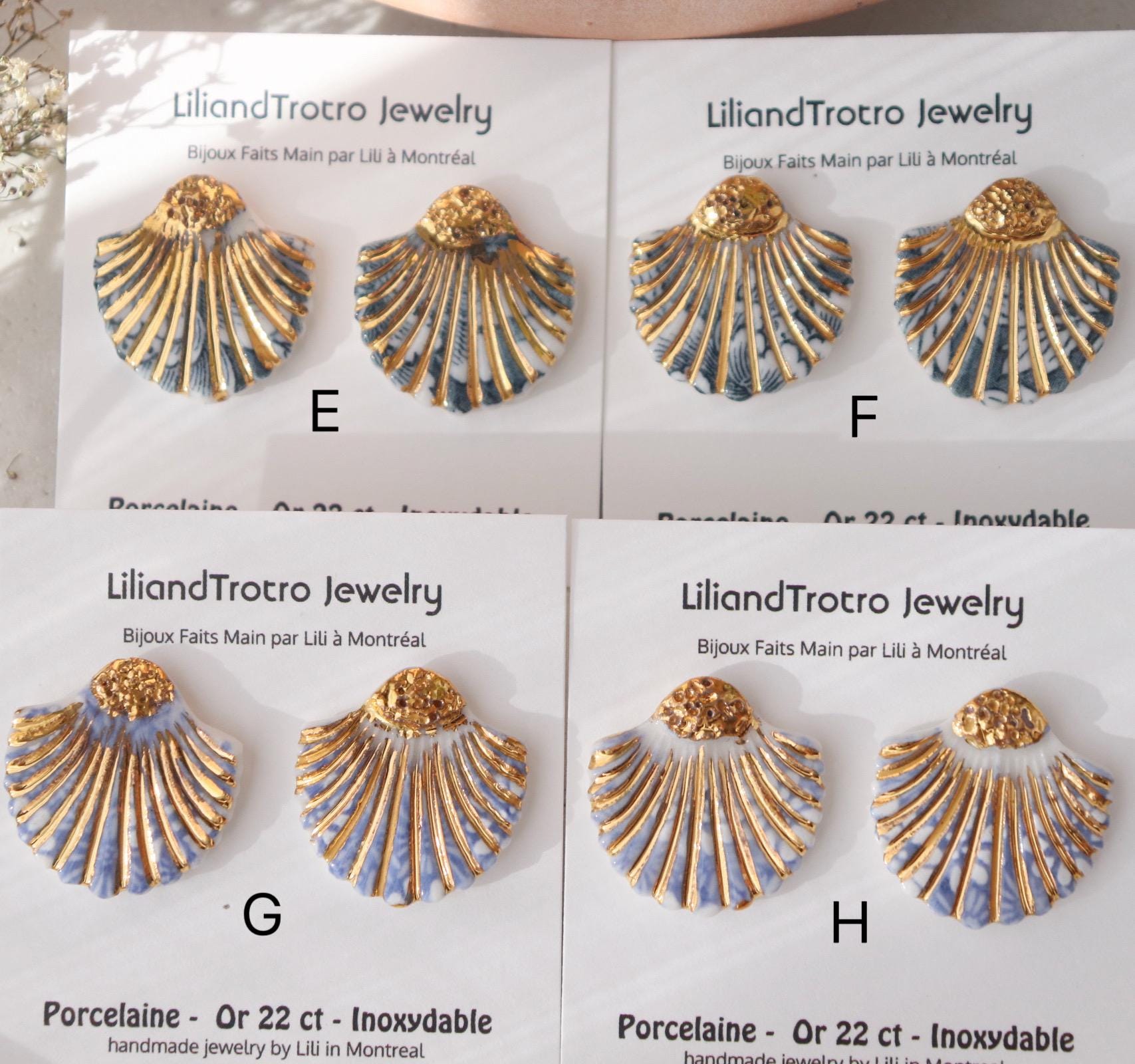 Glossy gold painted seashells are handmade by me in Montreal studio.