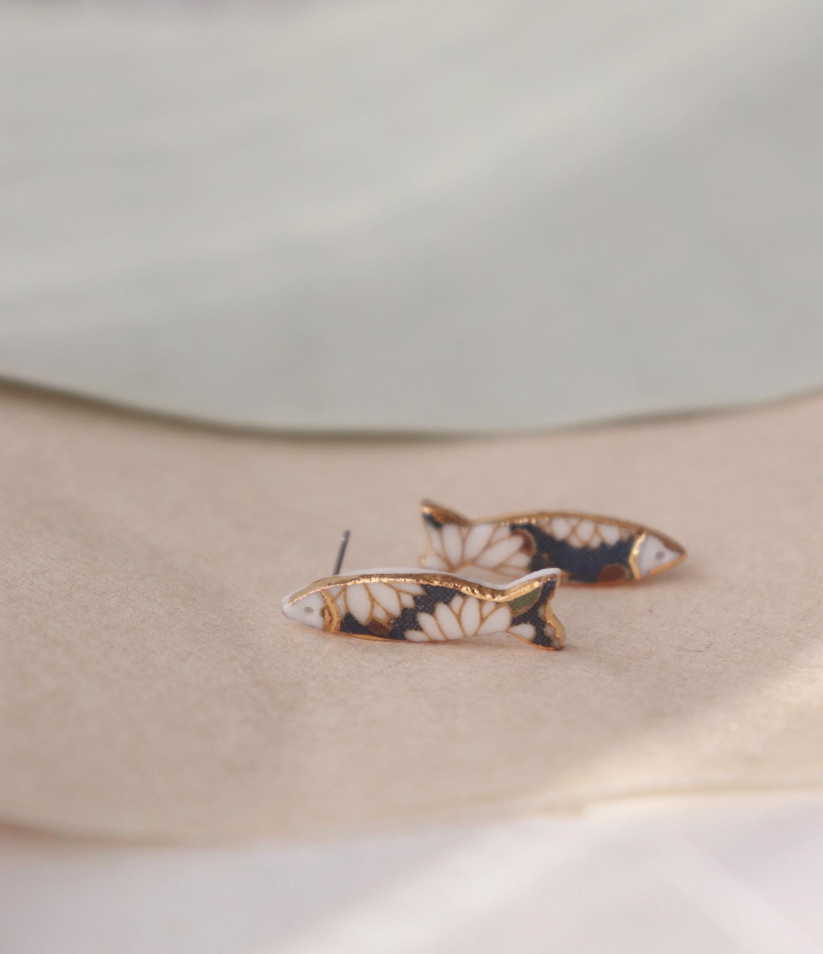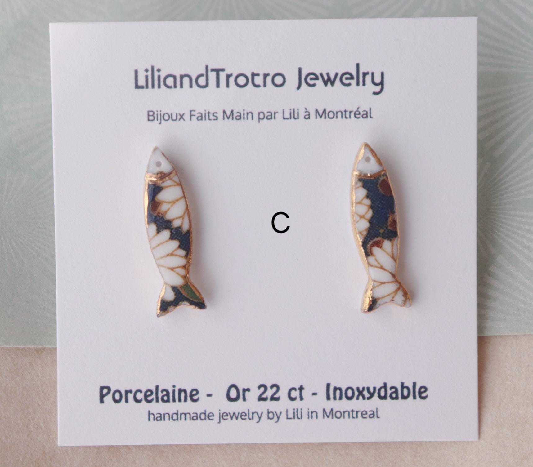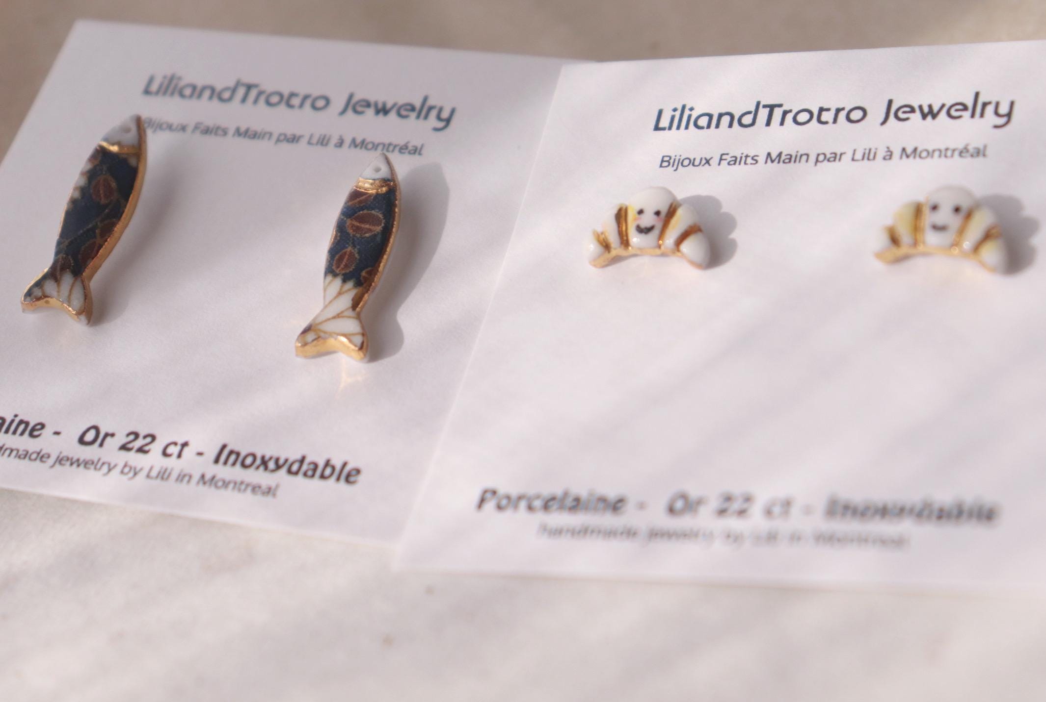 Blue floral patterned Sardine, and Hand painted croissants alone with liquid gold contour, not perfect.. but unique in the world.