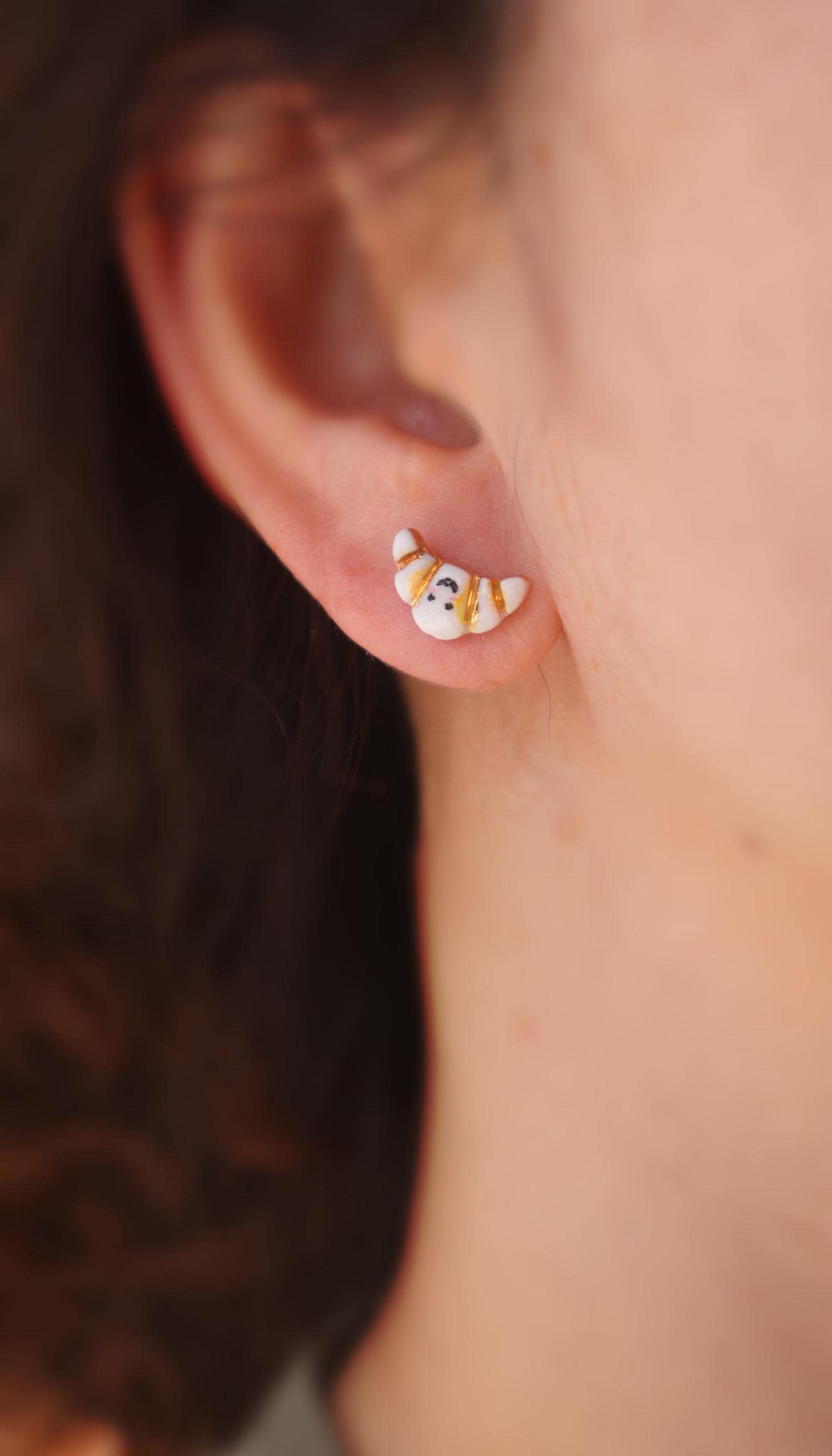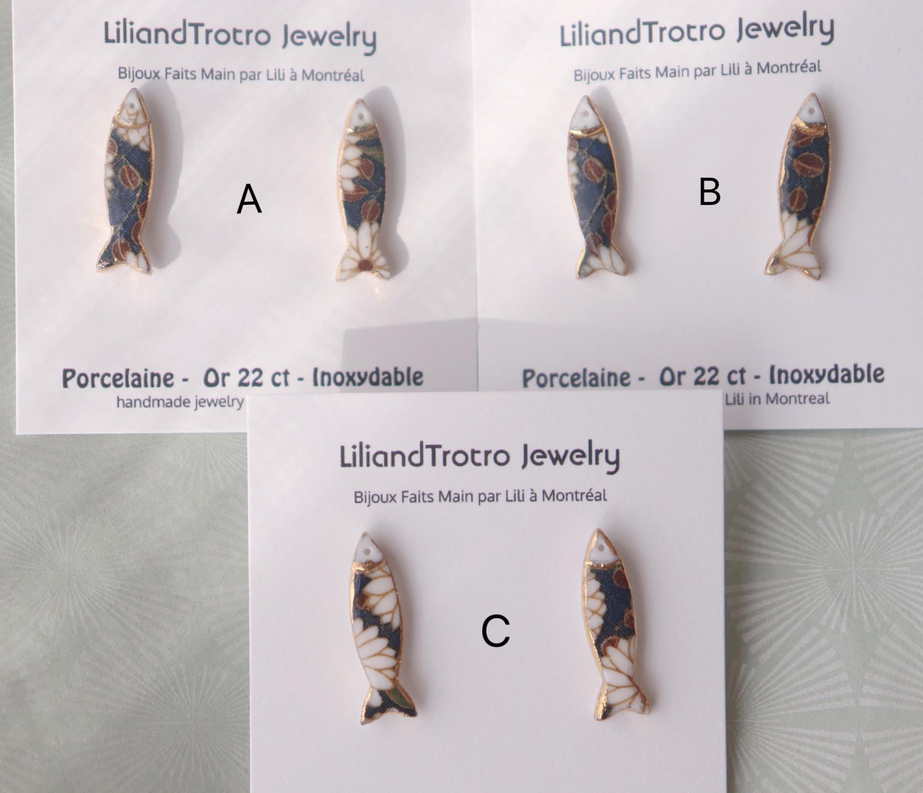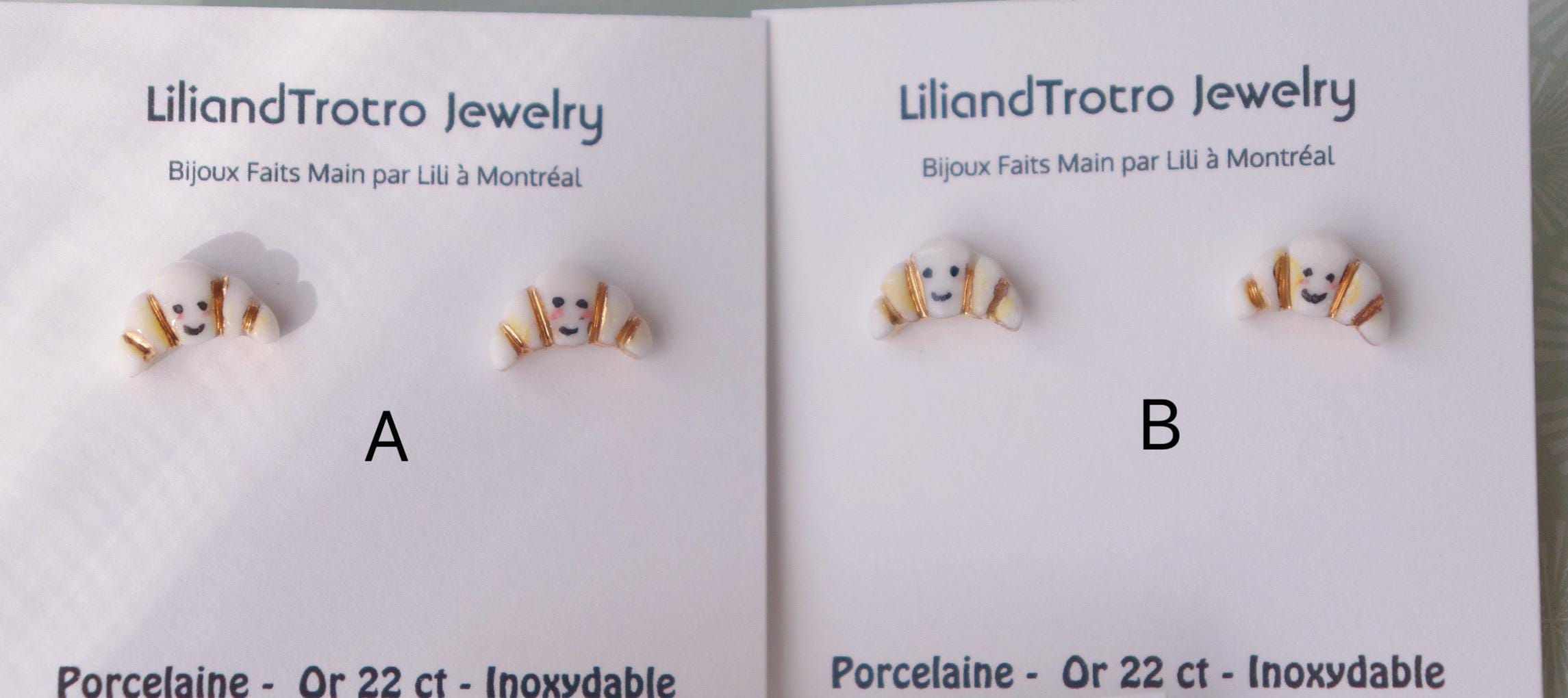 Blue floral patterned Sardine, and Hand painted croissants alone with liquid gold contour, not perfect.. but unique in the world.