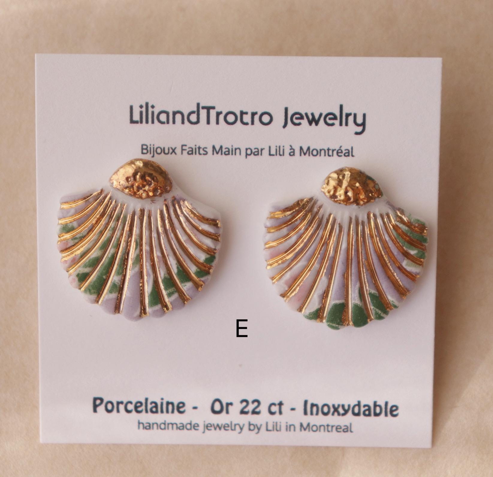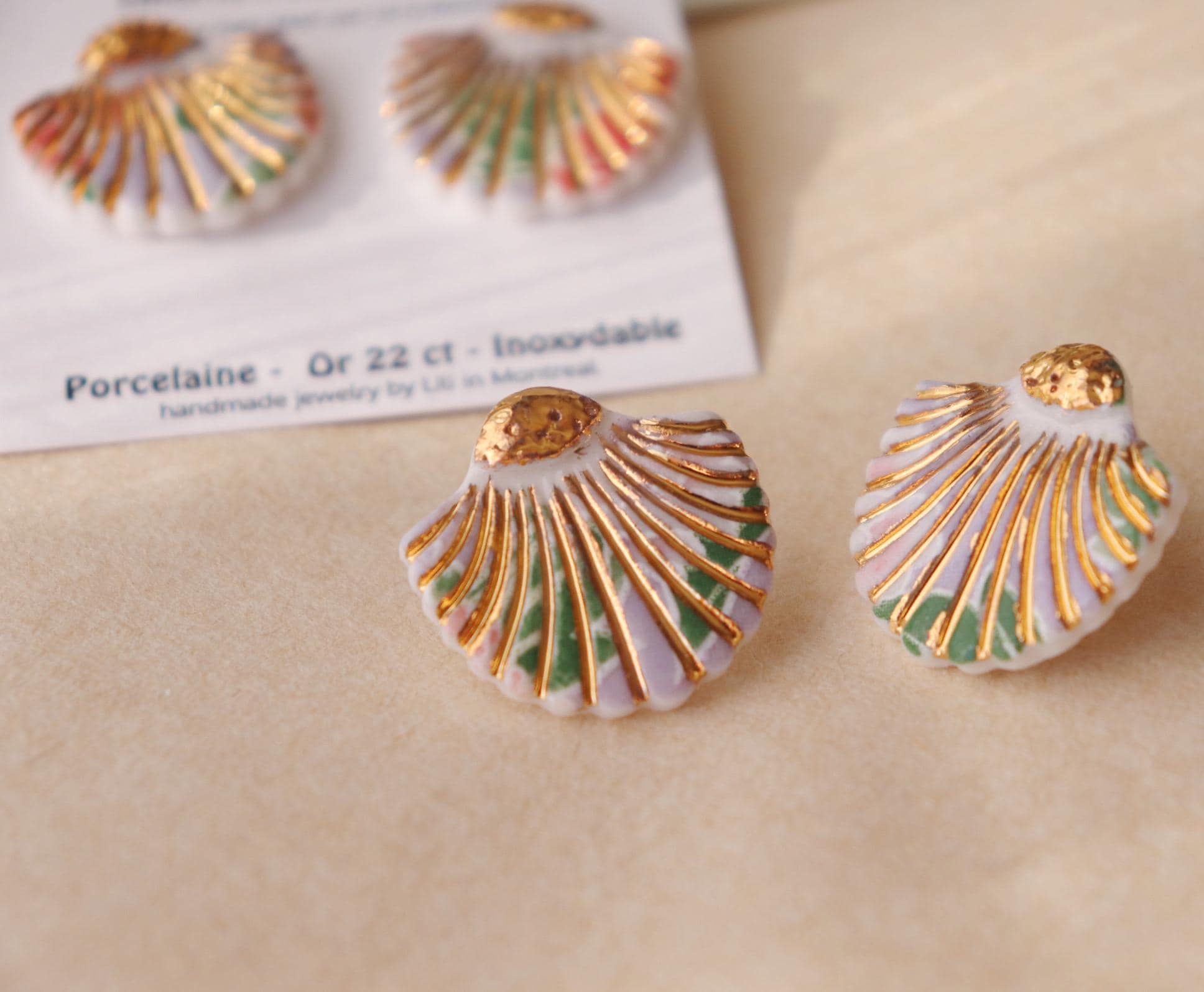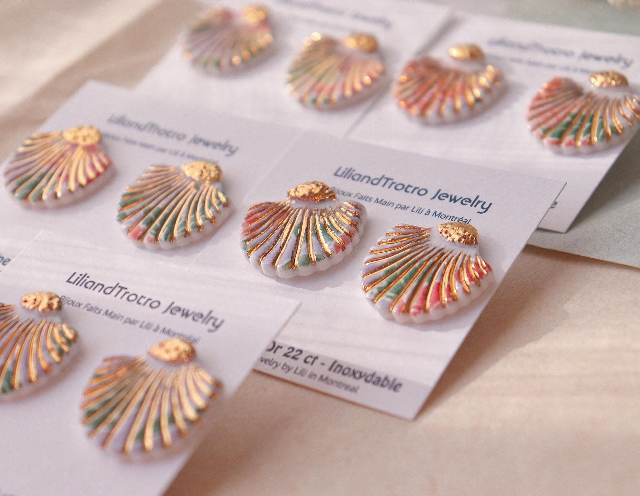 Glossy gold painted seashells are handmade by me in Montreal studio.