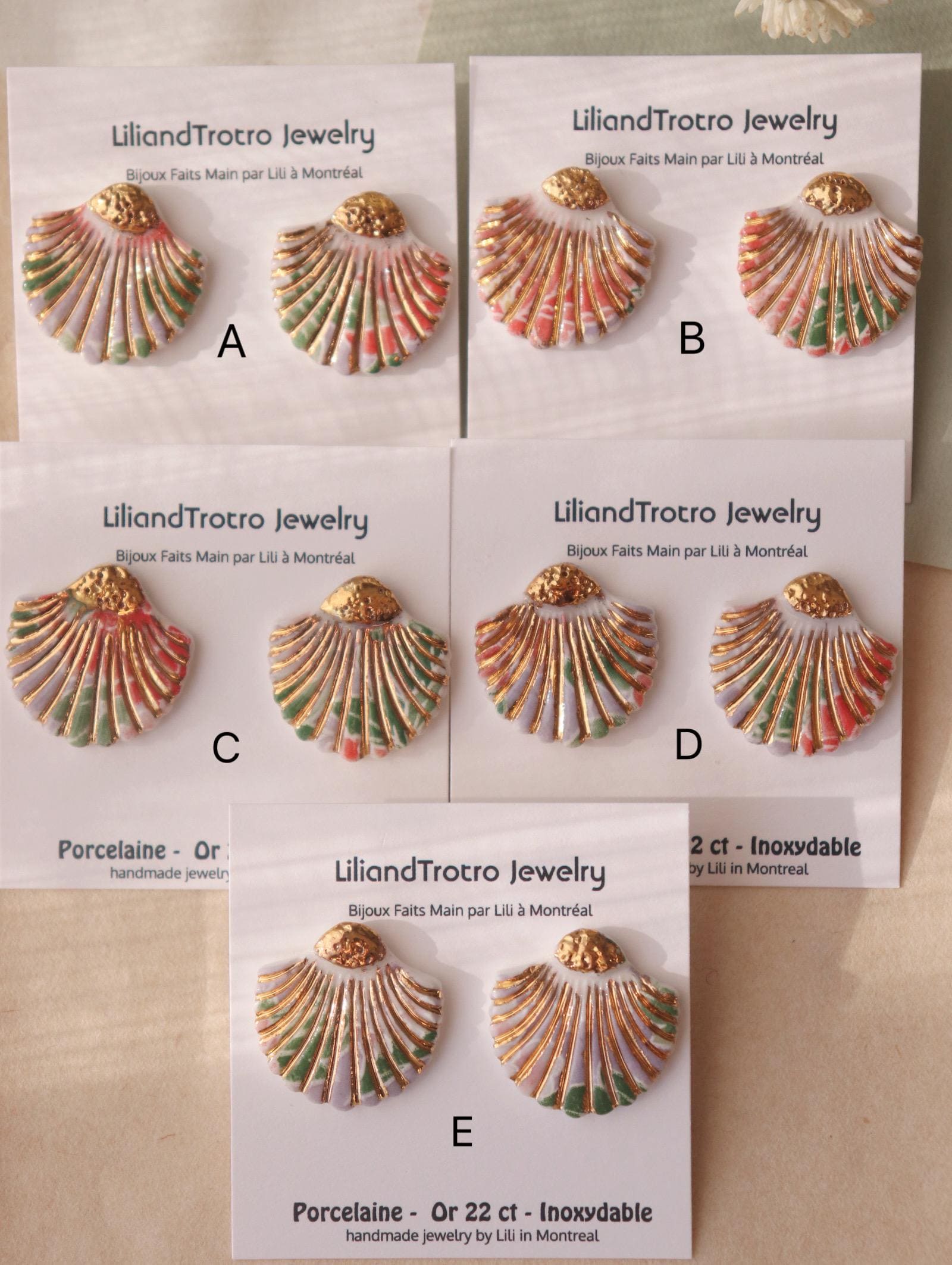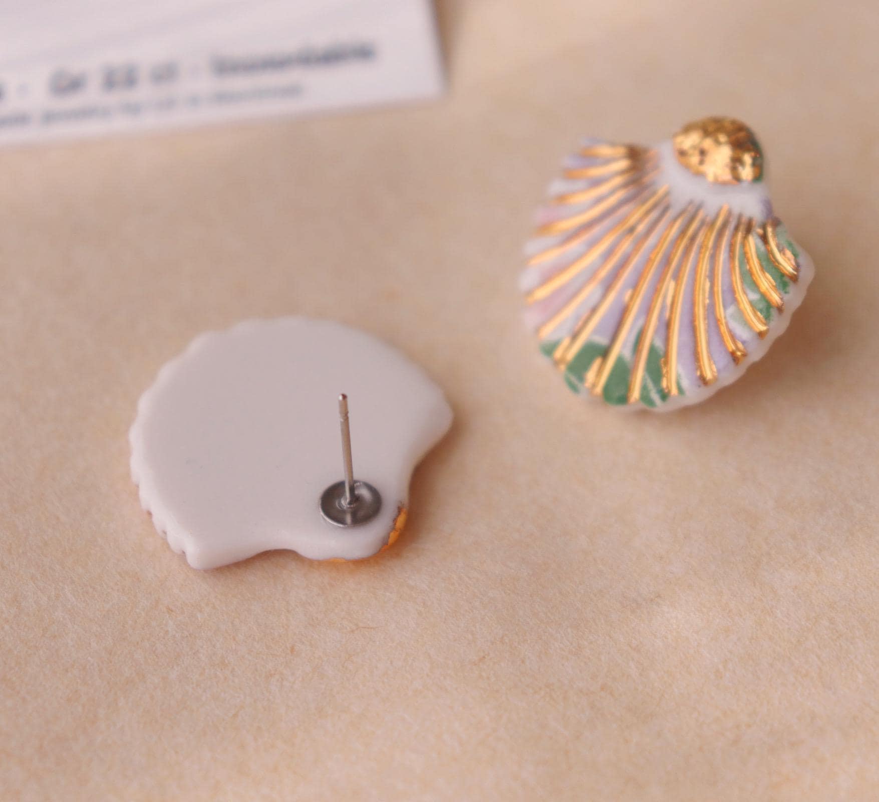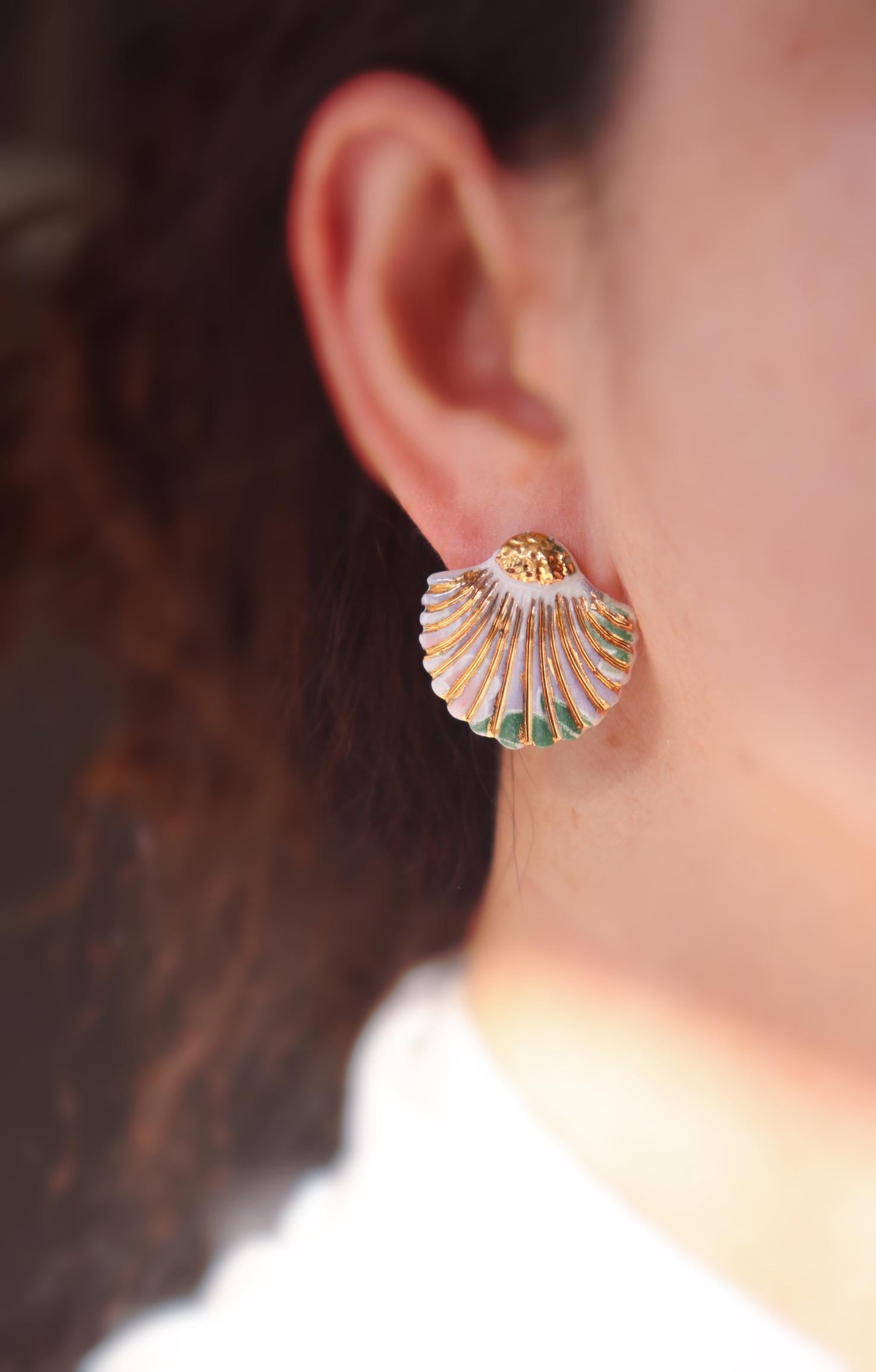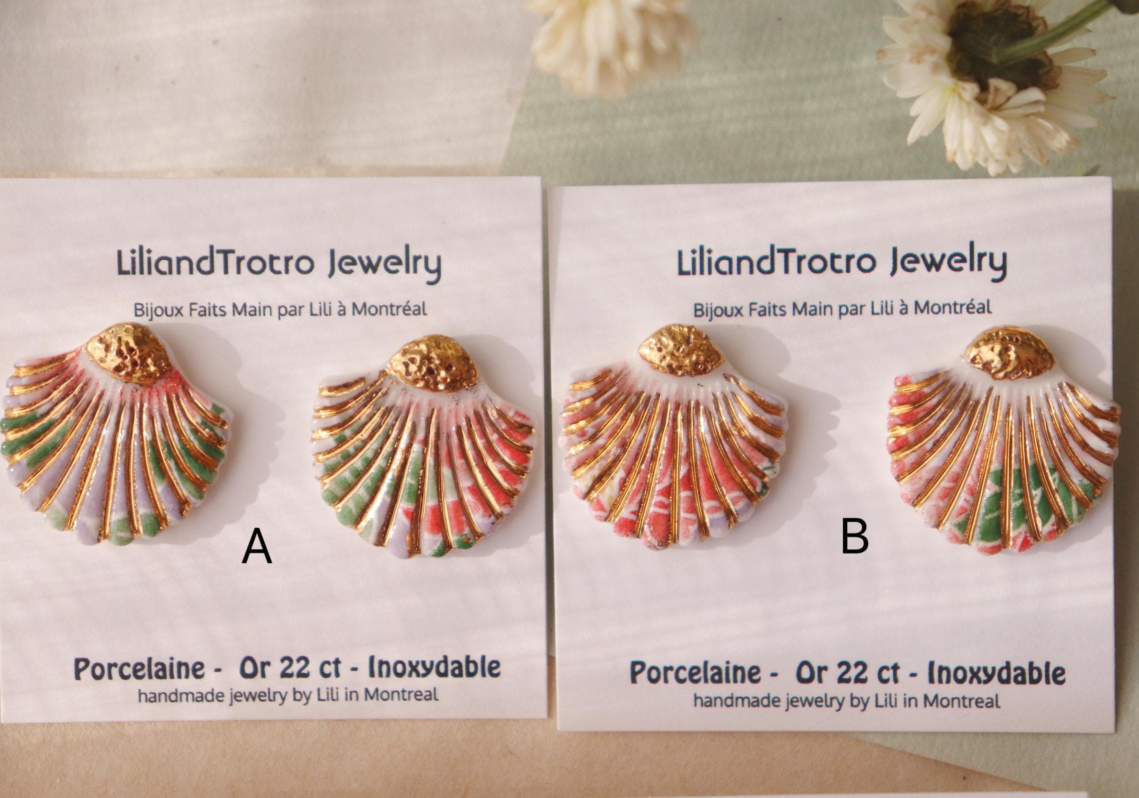 Glossy gold painted seashells are handmade by me in Montreal studio.
