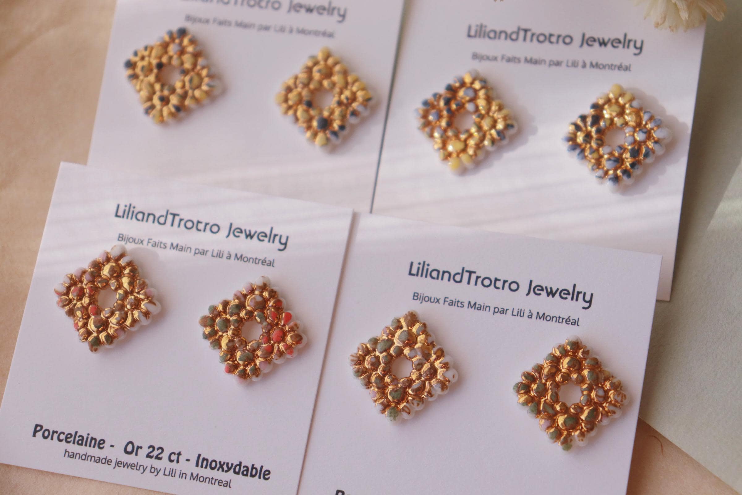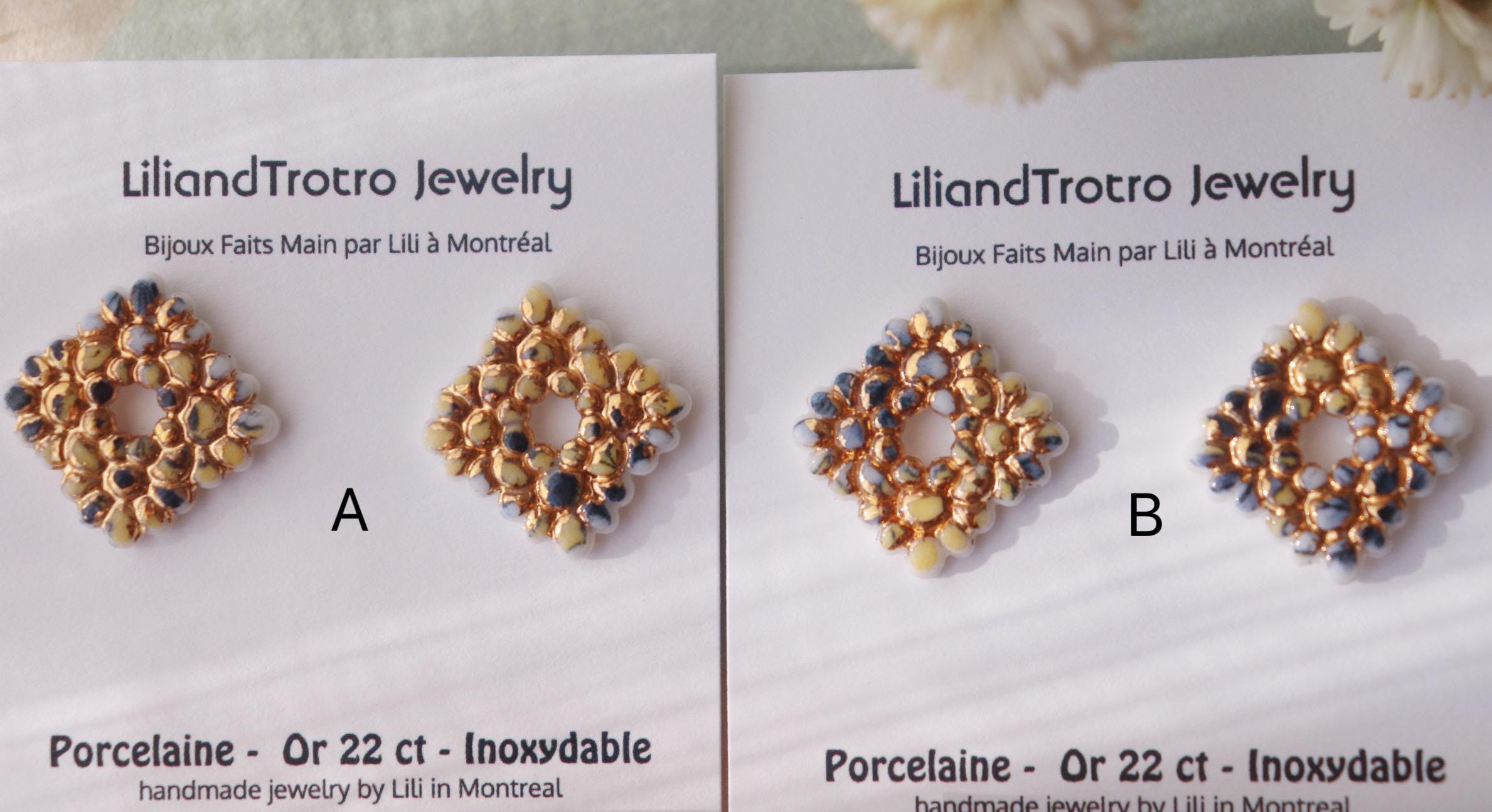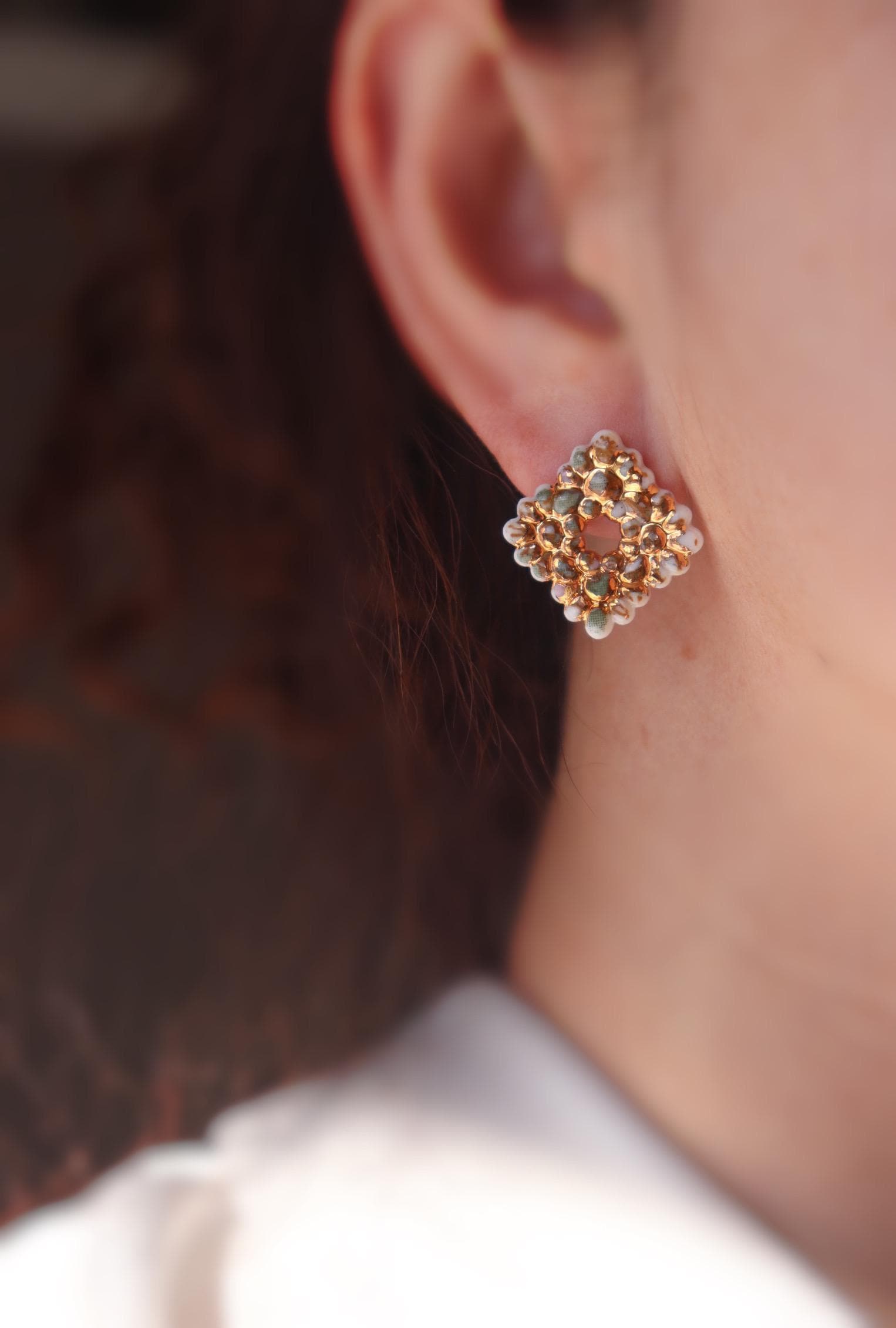Colorful flower cluster square studs.